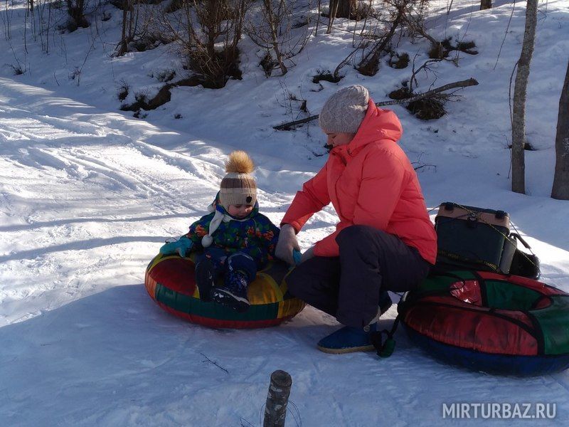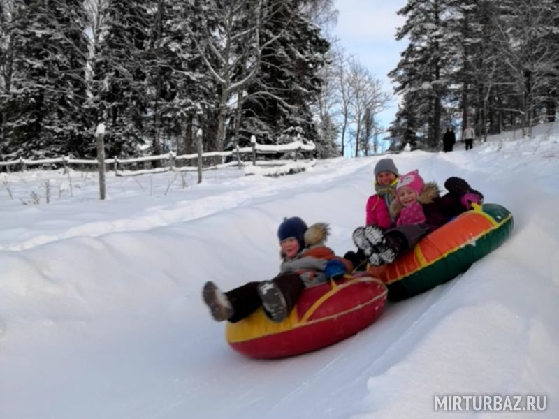 Также в зимнее время организуется снежная горка, с которой как дети, так и взрослые могут скатиться на специальной надувной ватрушке.