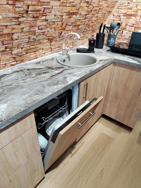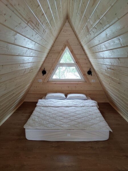 Коттедж представляет собой единое пространство: 1 этаж кухня-спальня-гостиная, 2 этаж-лофт спальня. Идеален для семьи, пары или небольшой компании родственников. Внутри полностью оборудованная кухня с плитой, чайником, микроволновкой, холодильником, посудомоечной машиной. В наличии есть вся необходимая посуда - тарелки, стаканы, сковородки, кастрюли, столовые приборы.