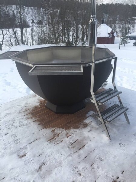 Читать полностьюБанный чан премиум-класса келлек для купания и парения на свежем воздухе.