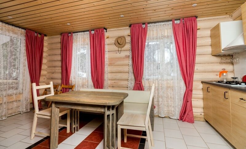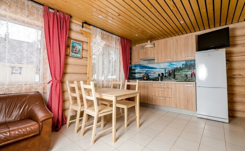 Питание осуществляется самостоятельно: в каждом доме имеется оборудованная кухня с варочной панелью, холодильником и посудой.