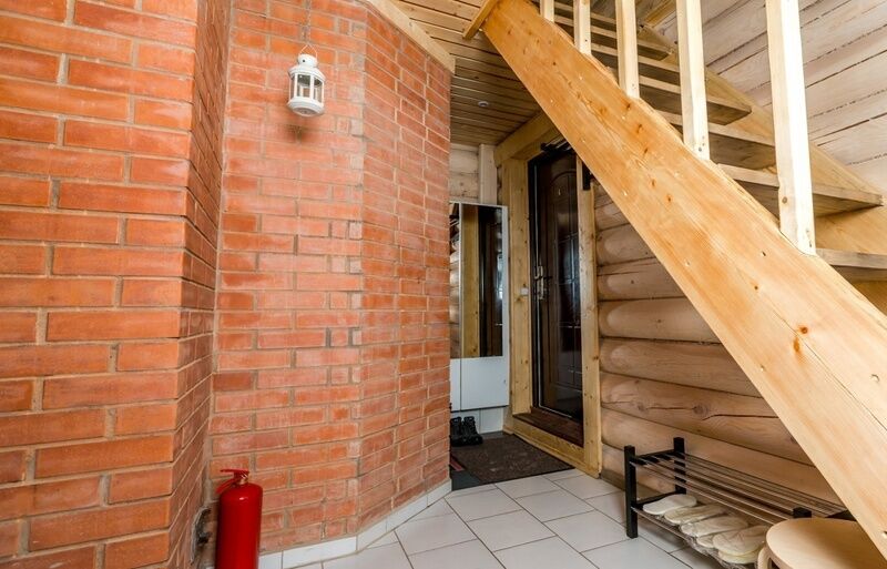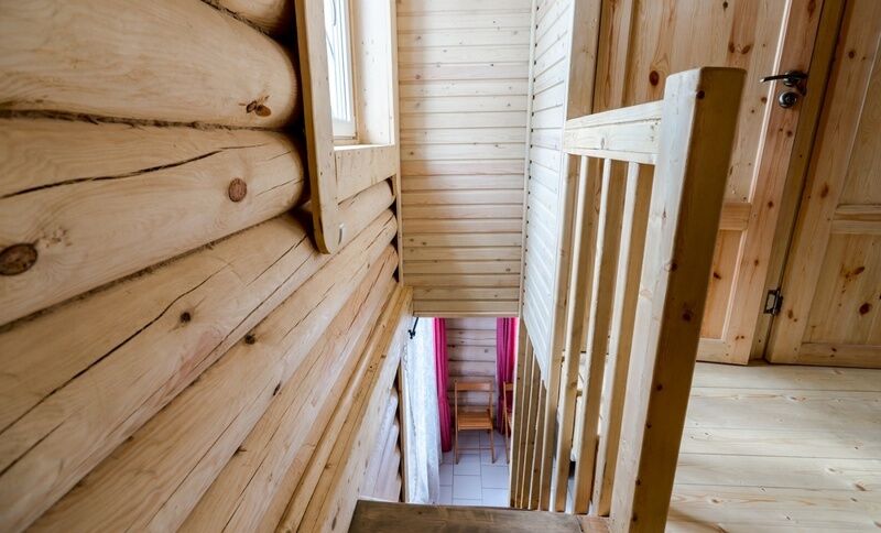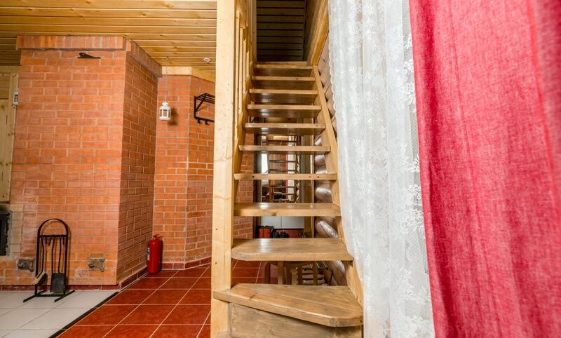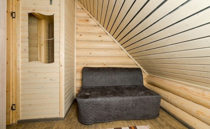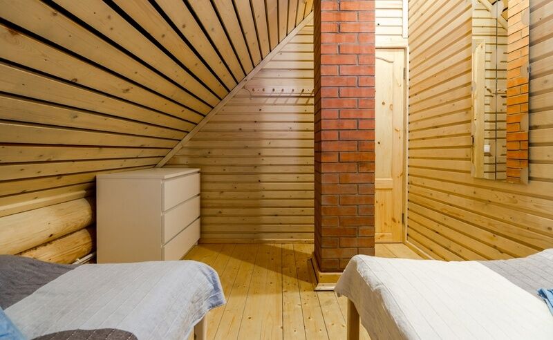 На 2 этаже находятся две спальные комнаты: в первой – двуспальная кровать и раскладной диван, во второй – три односпальные кровати.