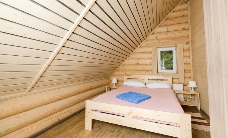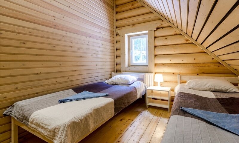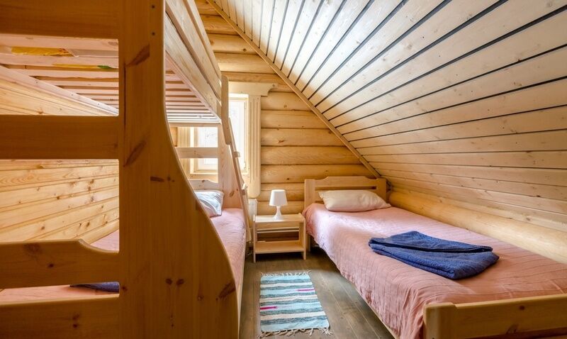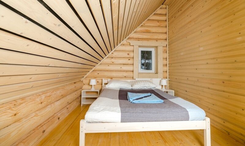 Для размещения гостей предлагаются три уютных двухэтажных домика: два дома на 7 человек (4+3) и один дом на 6 человек (4+2). Все дома оснащены удобствами (спальные места, кухня, душ и туалет, сауна, бытовая техника).