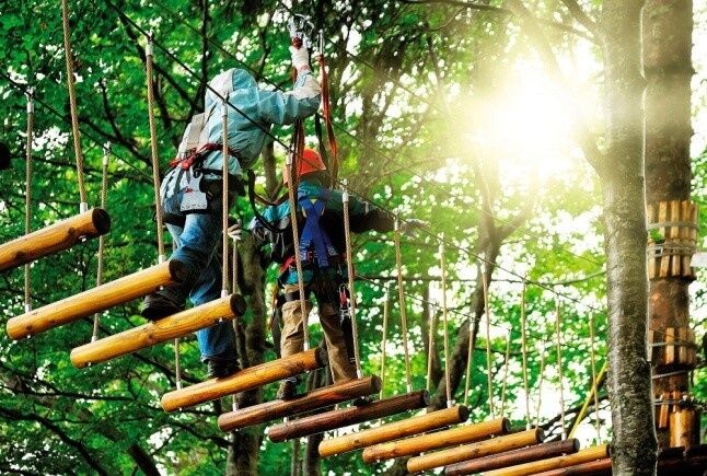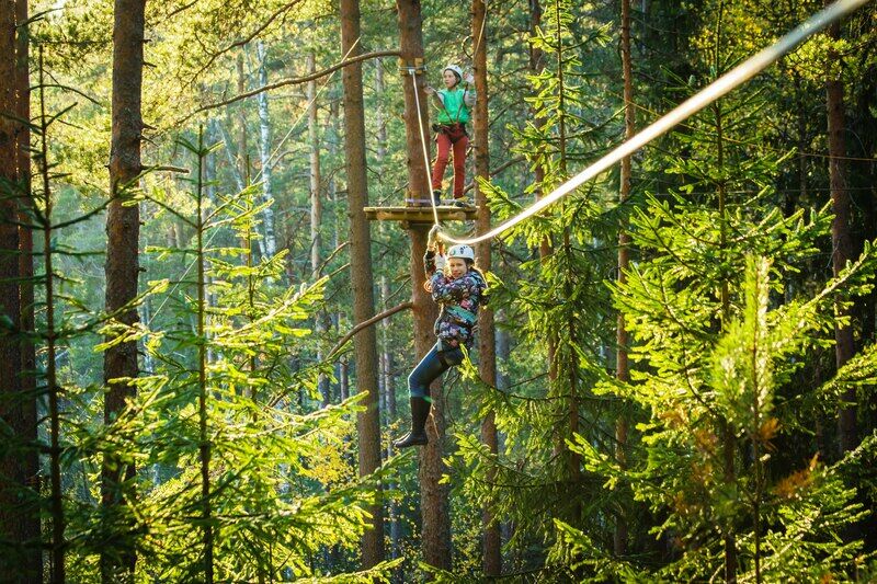Рядом с базой отдыха находится веревочный парк, который расположен на скале над развалинами древнего поселения.