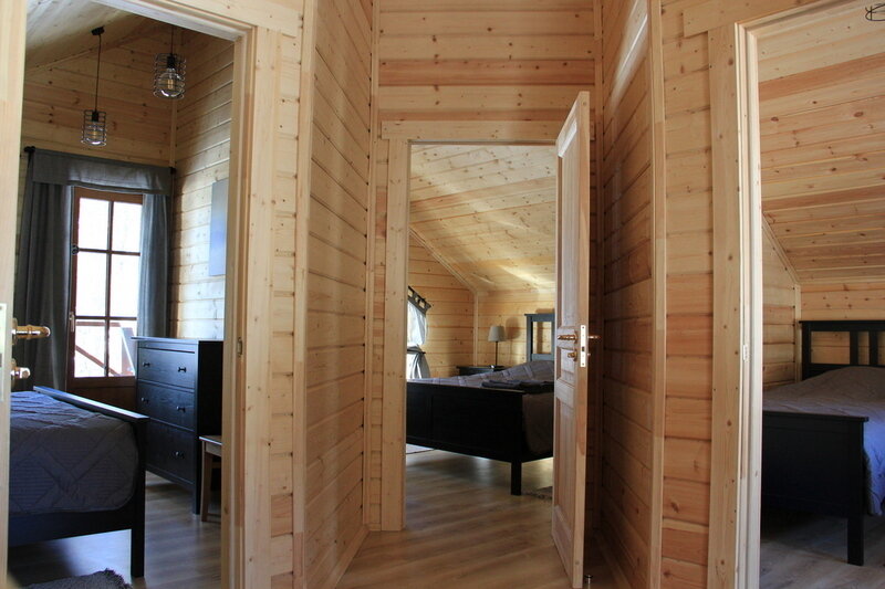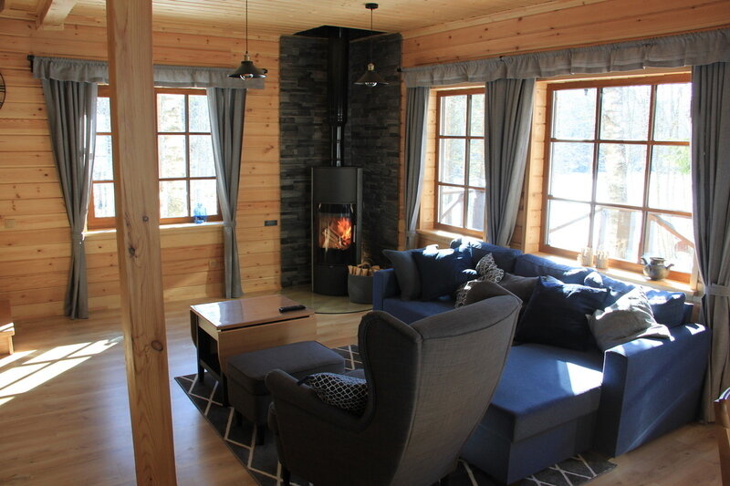 Оснащение коттеджа: теплые полы, камин, микроволновая печь, посудомоечная машина, газовая варочная панель, чайник, тостер, вся необходимая посуда и утварь, две обеденные зоны (одна из них уличная), гостиная зона, спутниковое телевидение, wi-fi, сотовая связь, постельное белье и полотенца, фен, гель для душа, одноразовые тапочки и т.д.