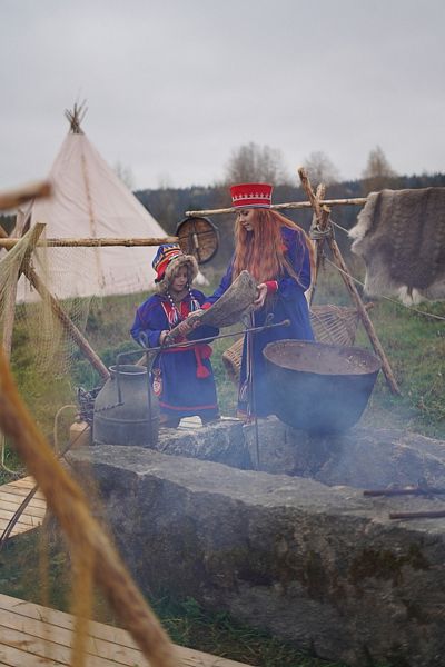 - Вы побываете в воссозданном древнем стойбище саамов, с куваксами, вежей шамана и бревенчатым схроном;
