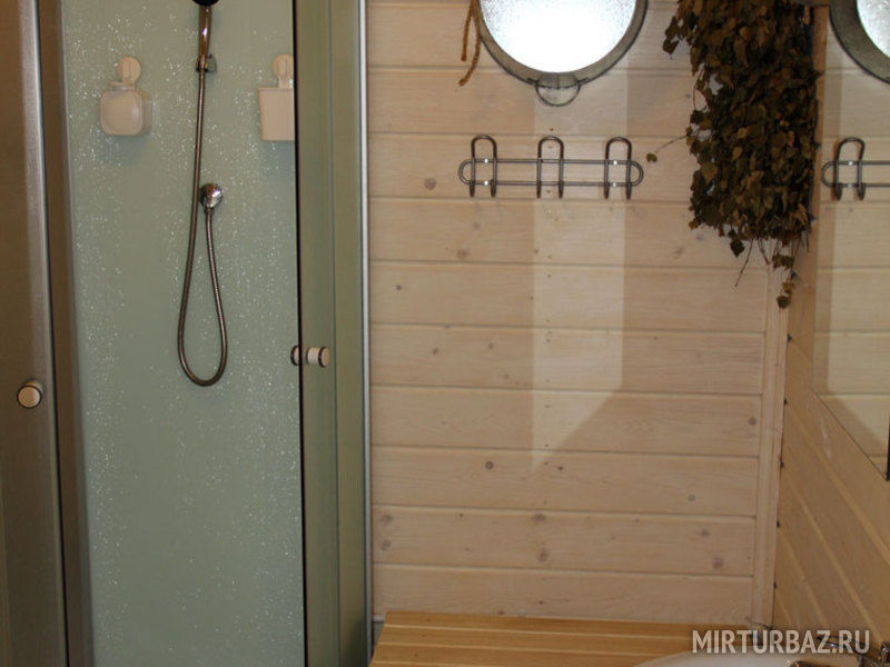 Для вашего удобства и безопасности баня оснащена надежными поручнями, чтобы было удобнее вылезать из воды. Внутри бани, помимо парилки, есть зал для отдыха с камином, телевизором и чайными принадлежностями, а также с большим столом, за которым сможет легко разместиться компания до 8 человек. Дополнительно баня оборудована современной душевой кабиной. А со стороны воды у бани расположена просторная терраса, на которой весьма приятно провести время в теплые деньки, чтобы полностью расслабиться и отдохнуть после жаркой парилки.