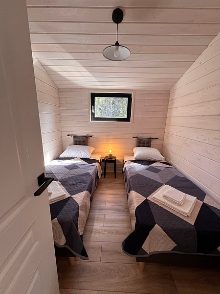 - в доме 2 спальни (2 чел. — отдельные кровати с возможностью совмещения, 2 чел. — большая двухместная кровать);