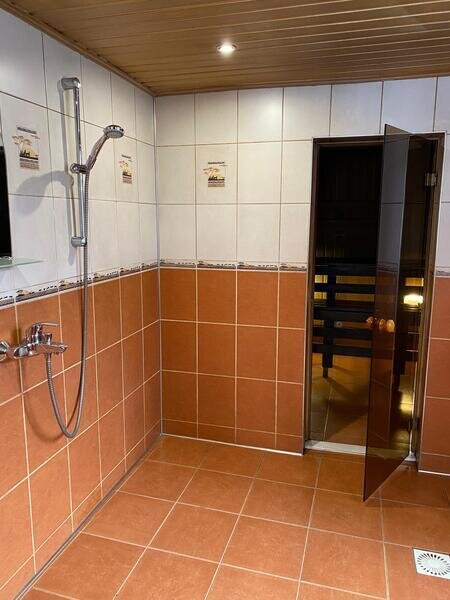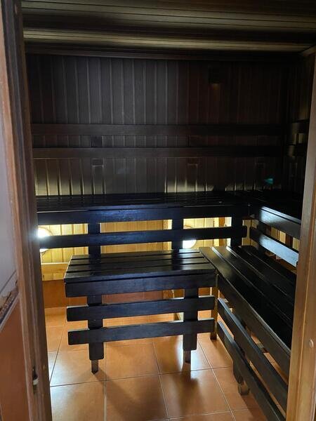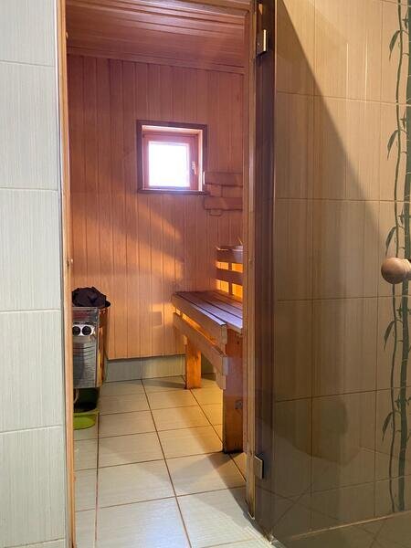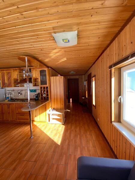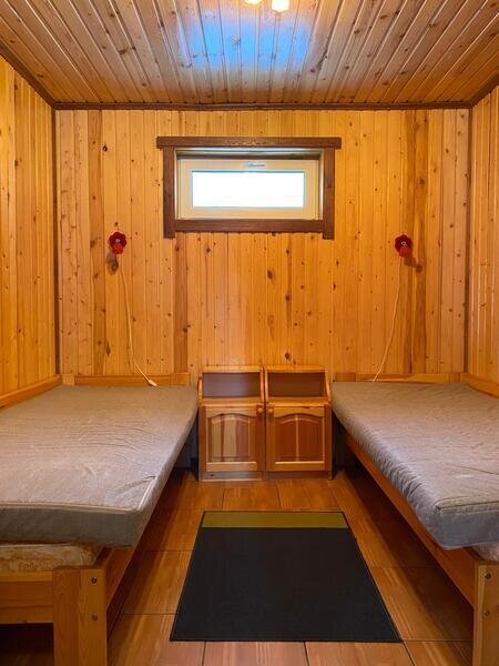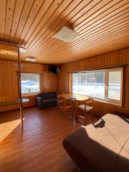 Оснащен: сауна и душевая, кухня (плита, микроволновка, холодильник, посуда)+гостиная, спальня, коридор. Автономное водоснабжение, спутниковое ТВ, wi-fi по запросу, посуда и постельное белье — все для комфортного отдыха. Теплые полы.