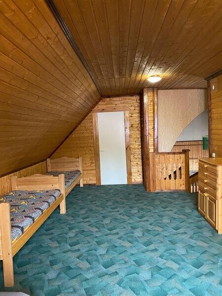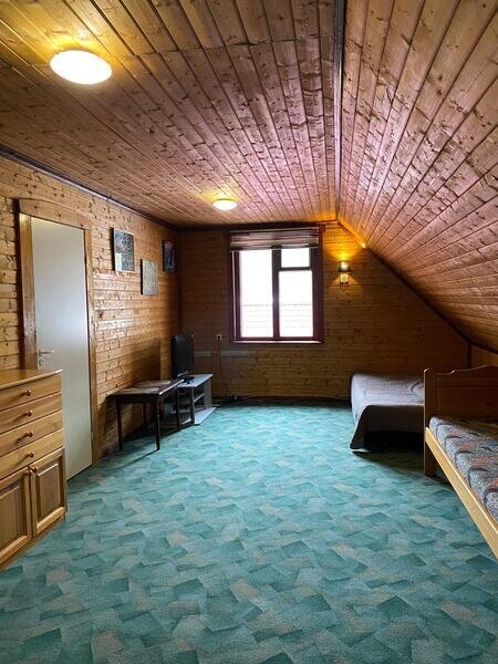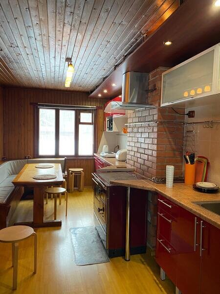 Двухэтажный коттедж 8+2: кухня-столовая (посуда, плитка, мультиварка, печь, микроволновка, холодильники), гостиная с камином, спутниковое ТВ, Wi-Fi по запросу, санузел; предоставляются постельное белье и полотенца, бытовая химия — все необходимое для комфортного отдыха.