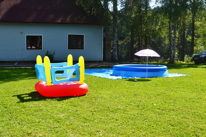 Для развлечения детей на территории оборудована игровая площадка с различными активностям, которые не дадут им скучать.