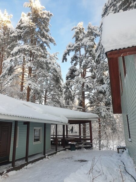 Вокруг коттеджей располагается лес, в котором можно собирать ягоды и грибы.