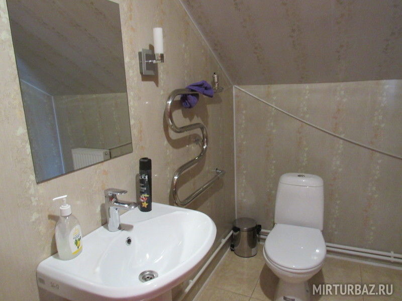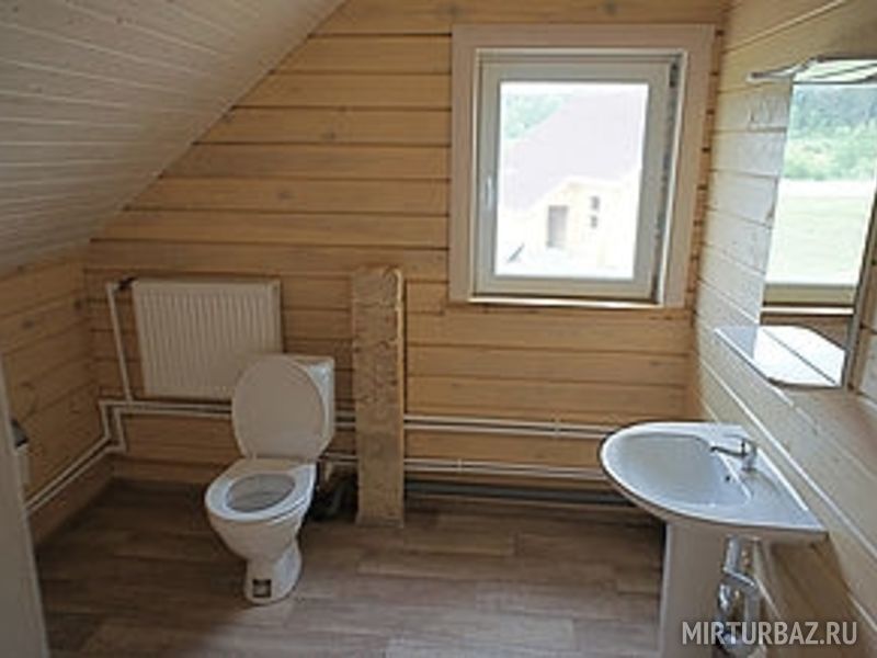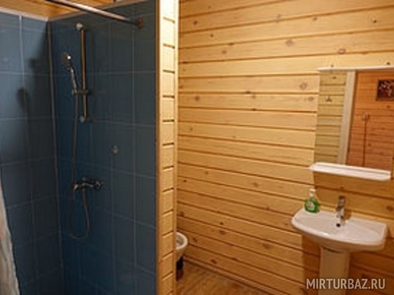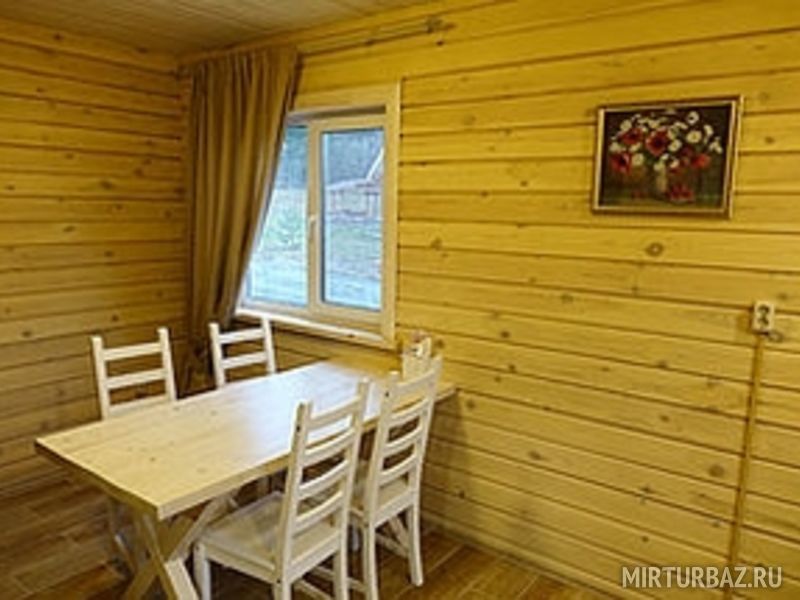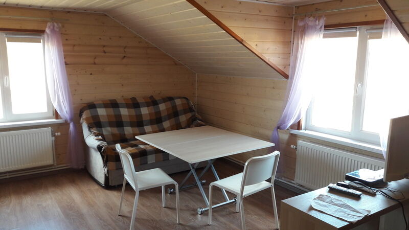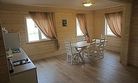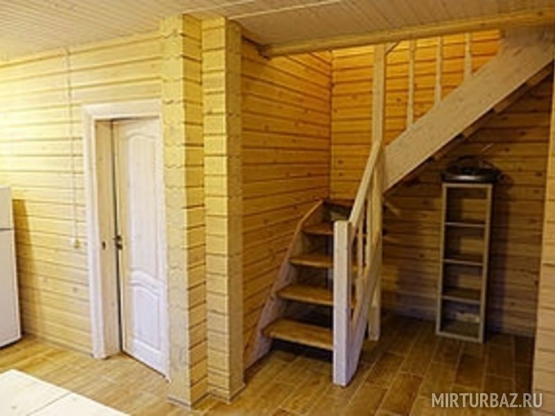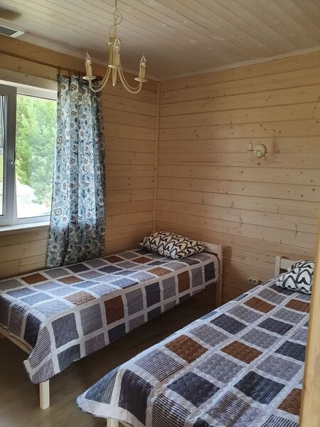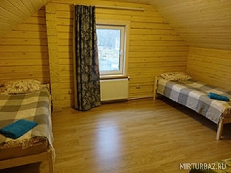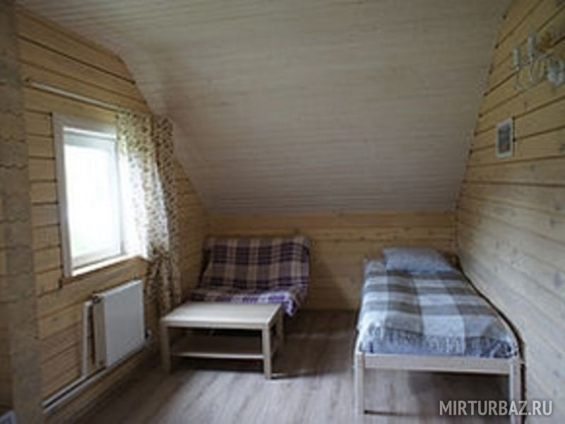Два двухэтажных 3-х комнатных апартамента в одном дуплекс-коттедже из бруса. Каждый из которых имеет две спальни (одна с двухспальной кроватью на 1-ом этаже и вторая с тремя односпальными кроватями на 2-ом этаже), просторную гостиную-кухню (с большим обеденным столом, набором посуды, холодильником, плитой, микроволновкой, электрочайником, музыкальным центром и телевизором), и санузлом с душем.