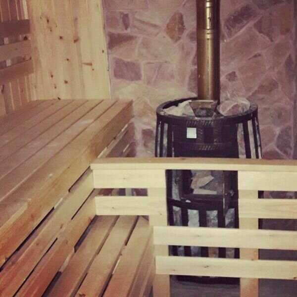 В парилке Вы можете от души «поддать парку» и в полной мере прочувствовать лечебную силу березового или дубового веника, а после расслабится в уютной комнате отдыха.Для любителей пейзажей построена крытая веранда, на которой можно прекрасно отдохнуть на свежем воздухе с кружкой любимого напитка.