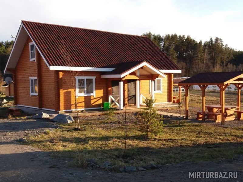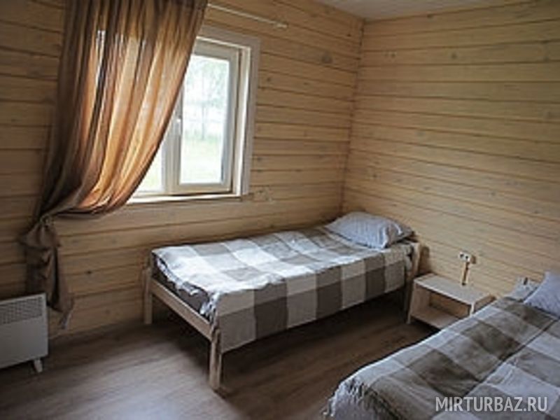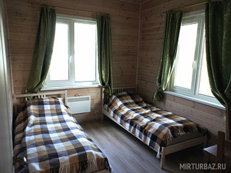 Два двухэтажных комфортабельных и теплых коттеджа №1 и №2 из профилированного бруса рассчитанные на прием 8 человек. В доме оборудовано четыре спальни (одна с двуспальной и три с двумя односпальными кроватями), гостиная-кухня, с большим обеденным столом, набором посуды, холодильником, плитой, микроволновкой, электрочайником, музыкальным центром и телевизором. Два cанузла на 1 и на 2 этажах, один из которых оснащен душем.