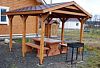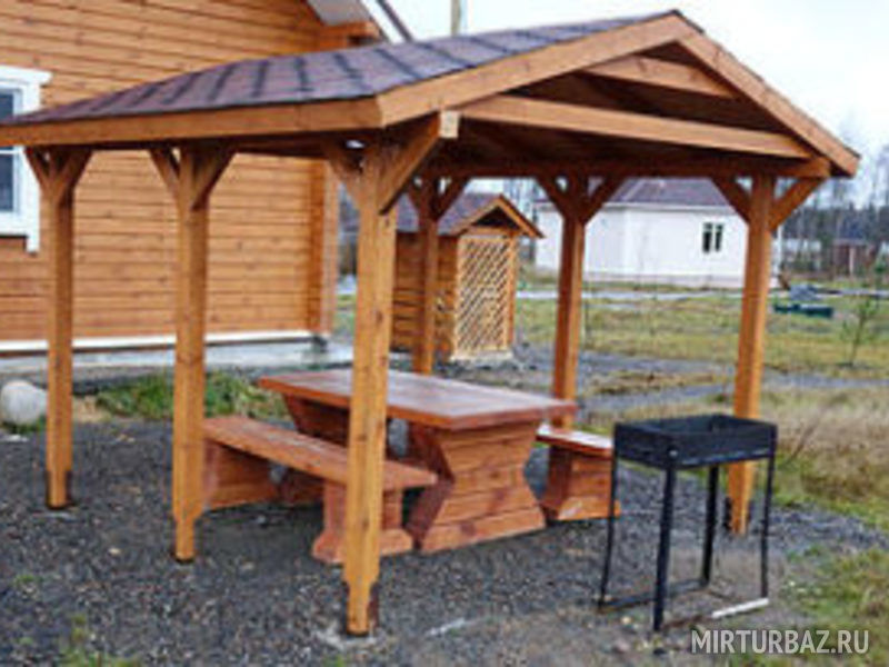 В любую погоду 6-8 человек с комфортом могут посидеть за столом на свежем воздухе у мангала.