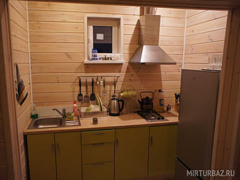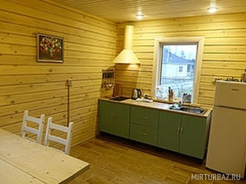 Небольшой, уютный и теплый, одноэтажный коттедж рассчитанный на прием 4-5 человек. В доме оборудовано две спальни (одна с двуспальной и одна с двумя односпальными кроватями),гостиная-кухня с раздвижным диваном, обеденным столом, камином, телевизором, музыкальным центром, набором посуды, холодильником, микроволновкой, газовой плитой и электрочайником. Санузел оснащен душем.