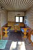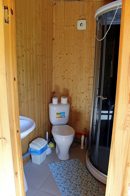 Внутри дома есть все необходимое для комфортного проживания: прихожая, душевая, кухня-гостиная и спальня на втором этаже.