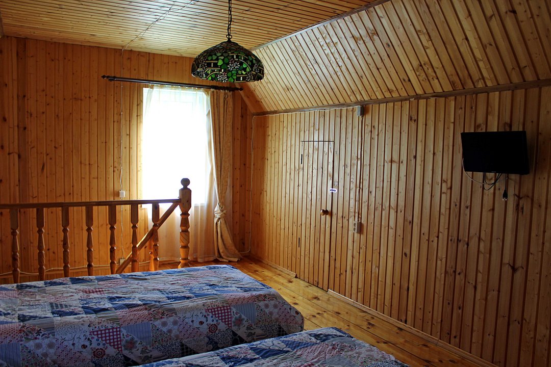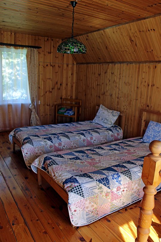 Спальные места: две односпальные кровати в спальне на втором этаже, раскладной двухместный диван в кухне-гостиной.