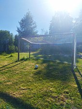 На территории дома находится закрытая веранда, баня, беседка, мангал, собственный пирс и спуск для лодок. Также можно арендовать сапборд и воспользоваться вольером для больших животных. Для детей и любителей активного отдыха есть футбольные ворота.
