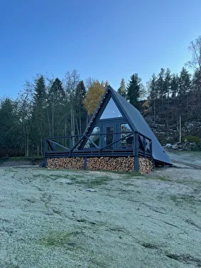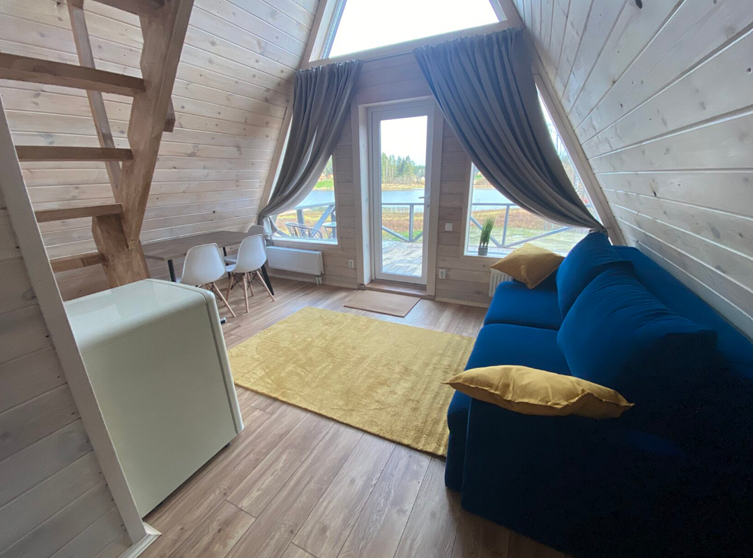 Уютный дом установлен на деревянный настил, подходит для проживания в любое время года. Расположен на берегу озера, имеет собственную террасу и мангальную зону.