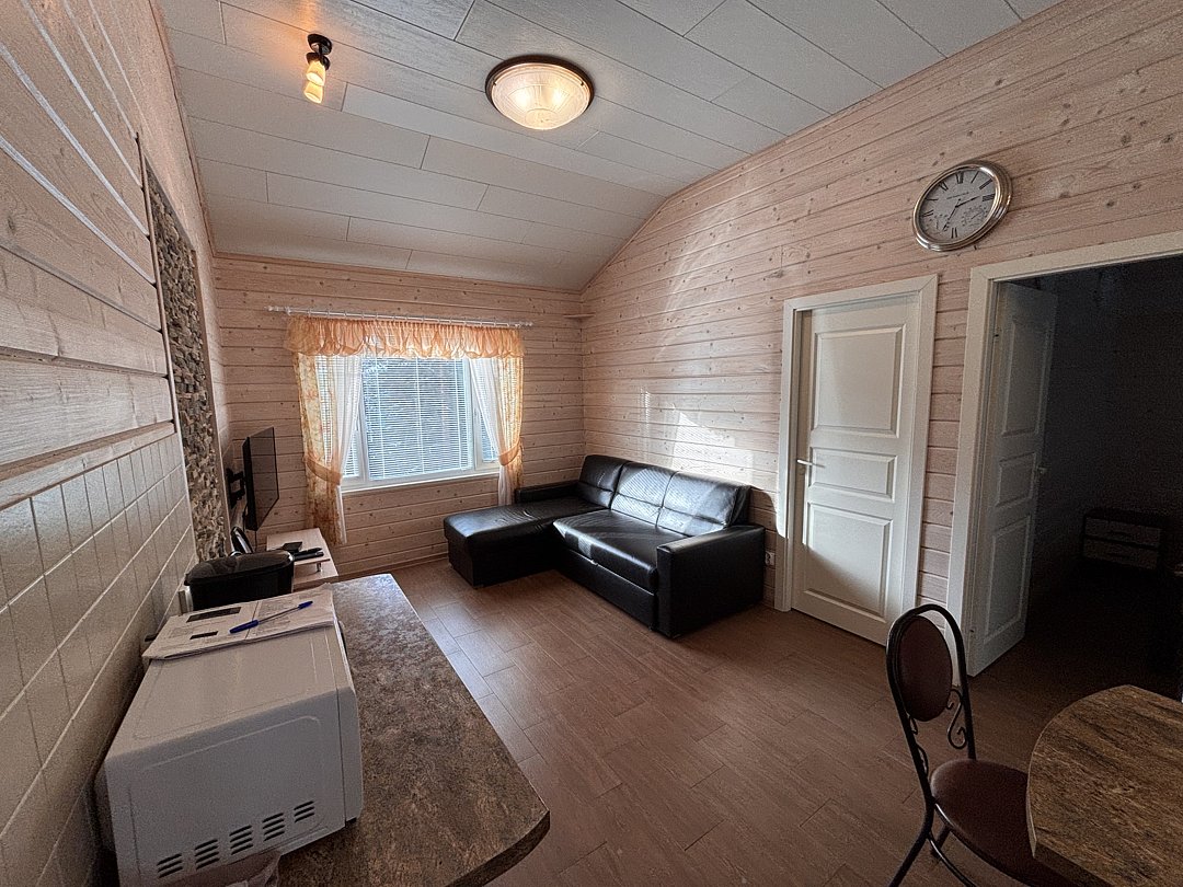 Гостевая зона с мягким диваном-кроватью на 2 спальных места, спутниковое телевидение, телевизор, столик. Санузел совмещенный с душем, туалетные и душевые принадлежности имеются. Чистое постельное бельё и полотенца предоставляются бесплатно.