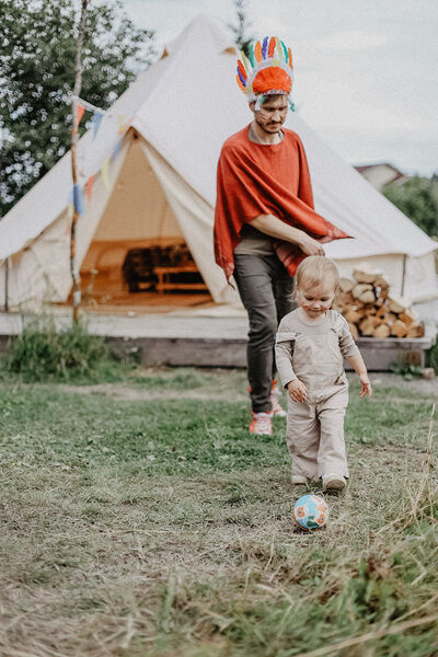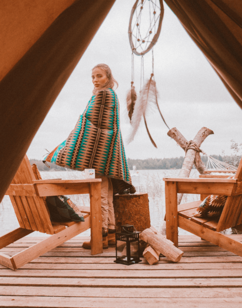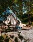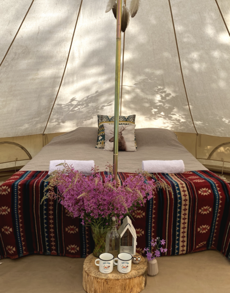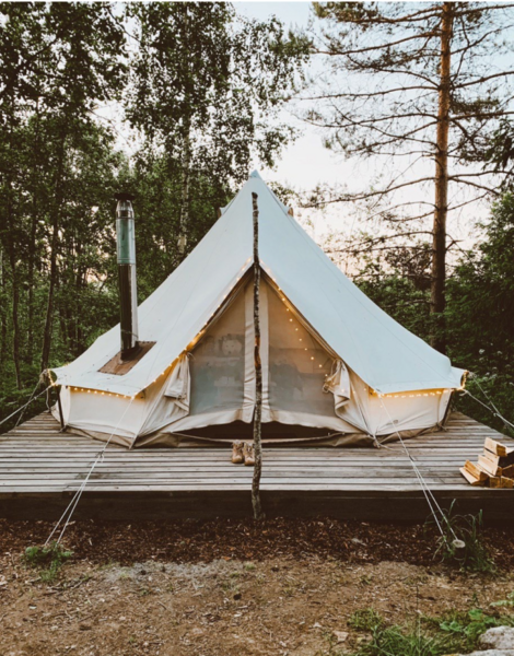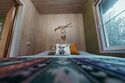 Небольшой романтичный шатер на двоих с гамаком и террасой. В шатре отсутствует электричество, отопление только дровяной печью. Атмосфера полного единения с природой. Кровать king size. Максимальная вместимость 2 человека.