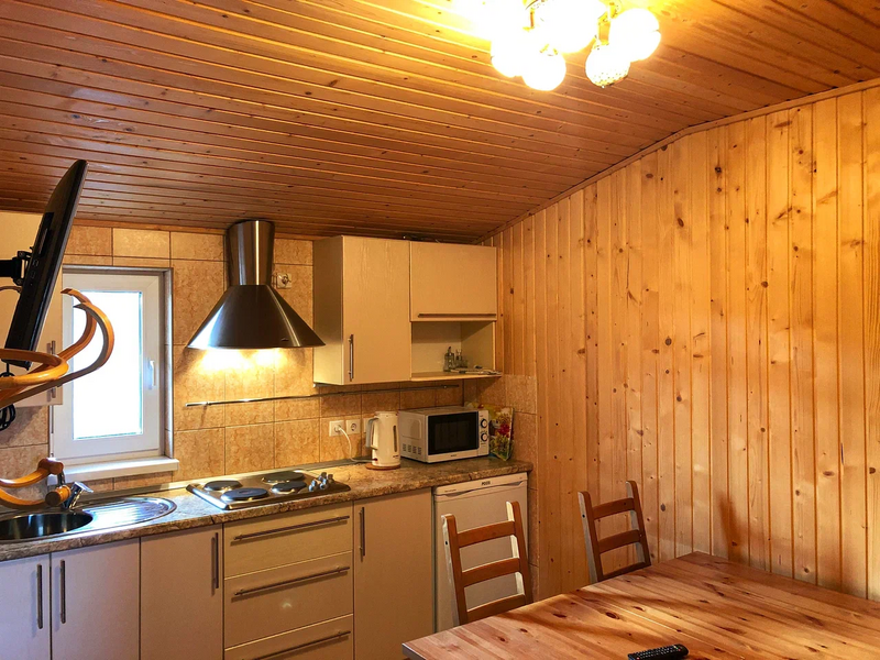 Одна спальня с двумя кроватями, постельное белье, полотенца, кухня, посуда, кухонные принадлежности, микроволновая печь, плита, чайник, теплый пол, душ, туалет, сауна, WiFi в номере, спутниковое ТВ, мангал на террасе.