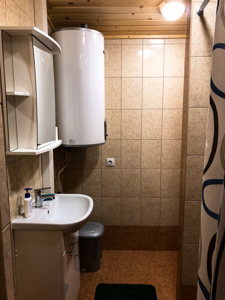ДостоинстваБыли с 11 по 15 июля. Никита, хозяин, доброжелательный и отзывчивый молодой человек. У нас был домик с баней. Замечательный. Хуторок Бабаягино, немного на отшибе, уединённо, нет никого рядом, полный релакс. Просторная кухня-столовая с большим столом, есть всё необходимое, посуда, кастрюли, сковородки, даже турка и чайничек. Микроволновка, холодильник, плита электрическая. Вид на полянку и кусочек озера, а ещё прикольная сосна там. Небольшая спальня с двумя удобными кроватями. В закуточке туалет, душ, что удобно, на полу, не кабина. А в конце банька небольшая с печкой и камнями. На улице есть дровяник с берёзовыми поленьями. Есть бойлер, поэтому всегда горячая вода. Недалеко есть небольшой пляжик, мы купались, но вода холодная.