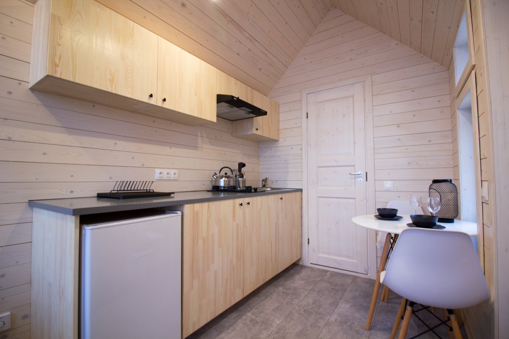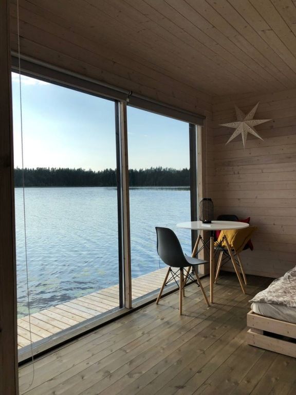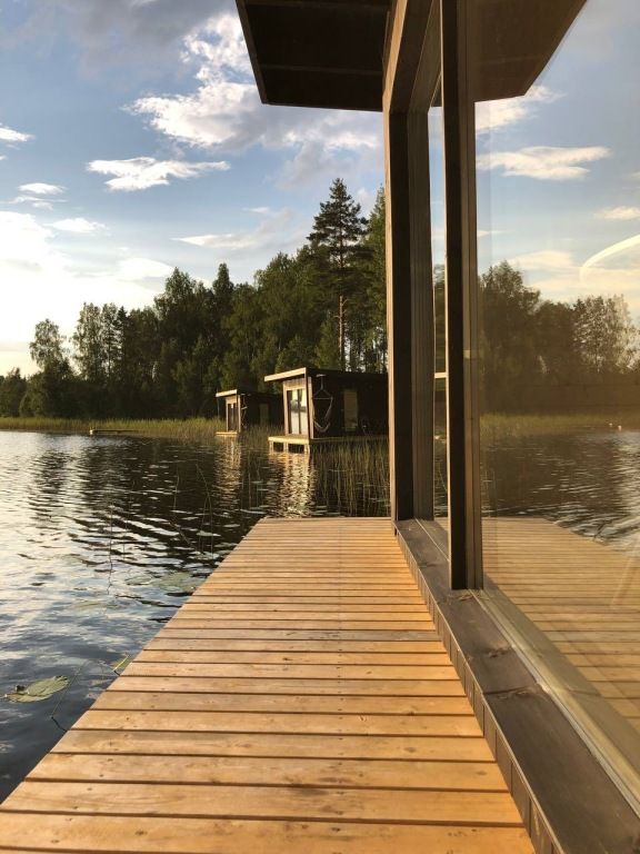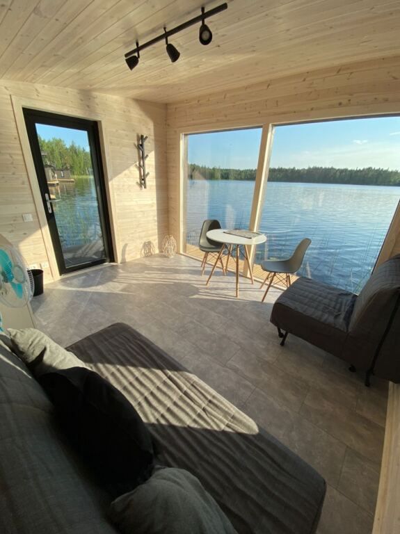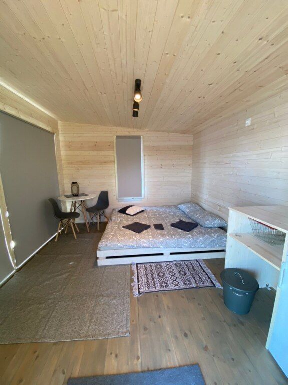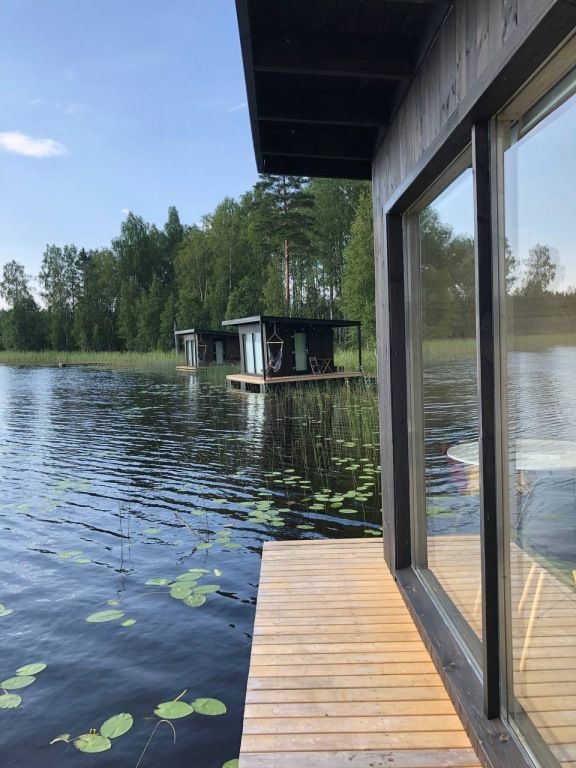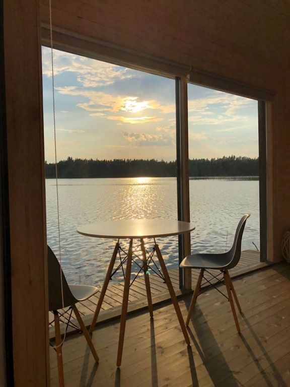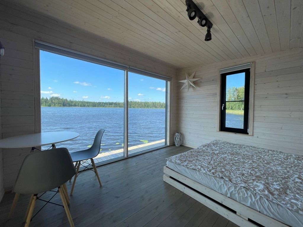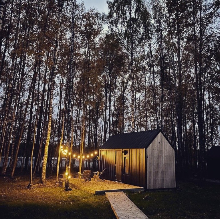 5 домиков на воде. Есть домик с детским дополнительным местом (от 7 до 14лет), остальные на 2х человек. В домике : спальное место, стол и стулья, холодильник, чайник, жалюзи, уличная мебель и мангал. В общем здании : души, туалеты, кухонная зона с микроволновкой, плитой и всей необходимой посудой.