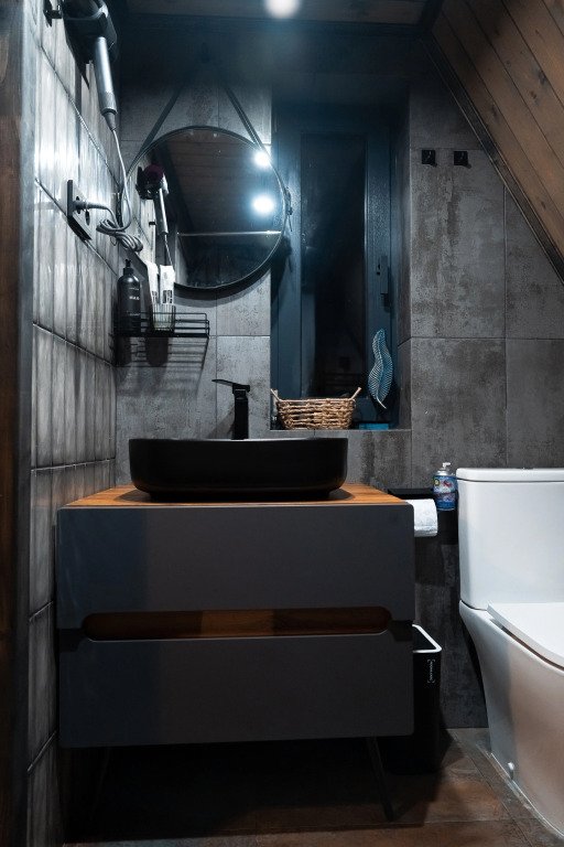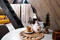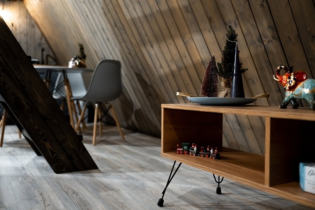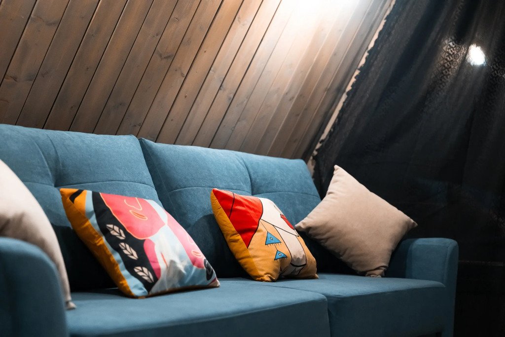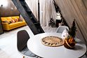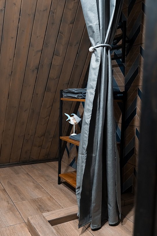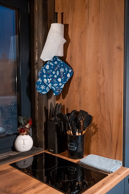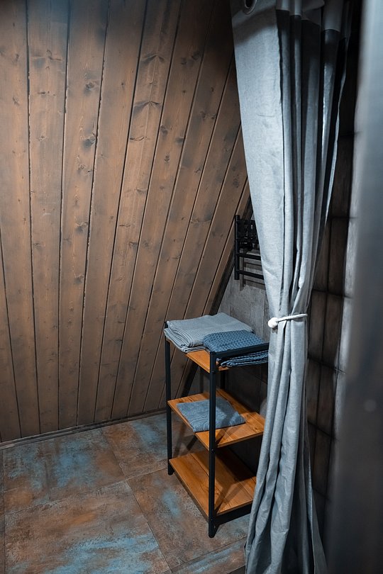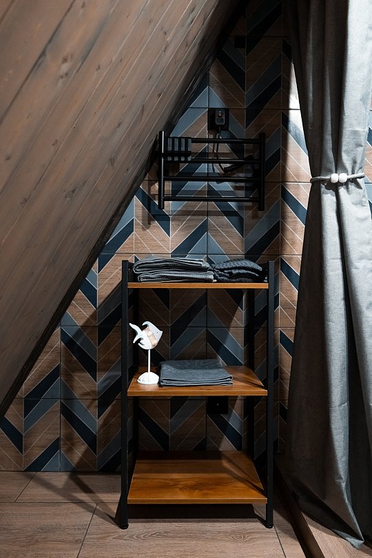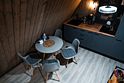 В каждом доме имеется: полностью оборудованная кухня-гостиная с полноценным раскладным диваном на 2 спальных места. В распоряжении гостей столовые приборы, кастрюли, сковородки, чайник, микроволновка, холодильник, плита. Для любителей кофе имеется кофемашина. На втором этаже большая двуспальная кровать с ортопедическим матрасом. Мягкое постельное белье. При необходимости можно оборудовать 5 спальное место, за дополнительную стоимость.