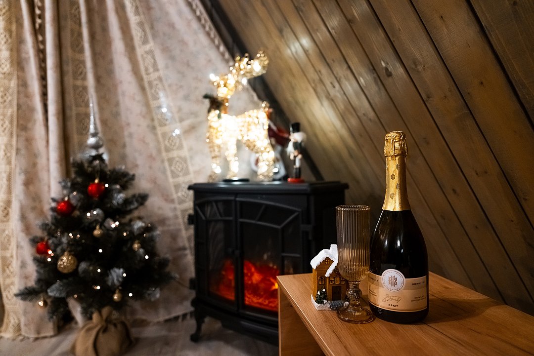 Рядом с домами — зона барбекю с мангалом, шампурами и решётками. На просторной террасе есть стол и стулья для приятного времяпрепровождения с чашечкой кофе или бокалом вина. Предоставляются тёплые пледы для вечеров у огня.