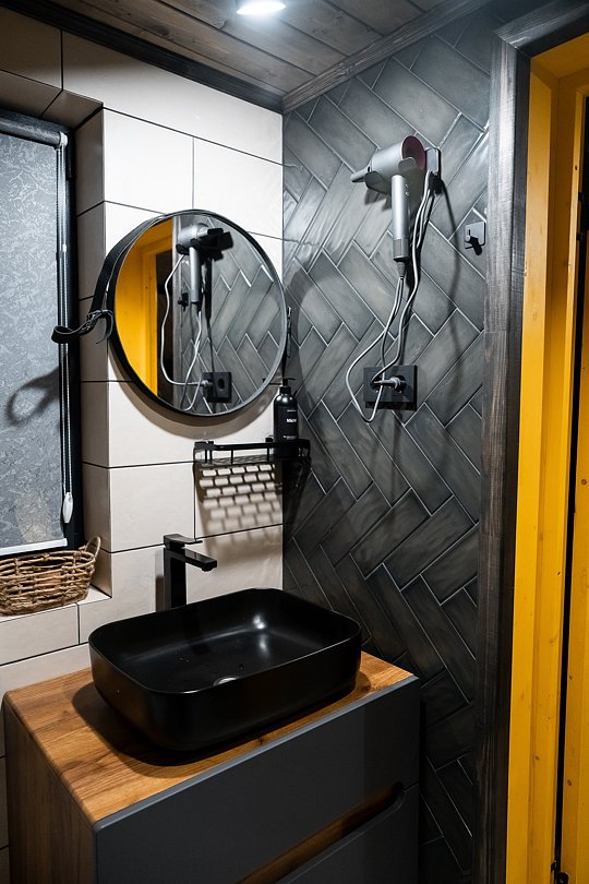 На территории базы стоят уютные глэмпинги, каждый из которых имеет полностью оборудованную кухню-гостиную, ванную комнату, все необходимые кухонные принадлежности и удобные спальные мест.