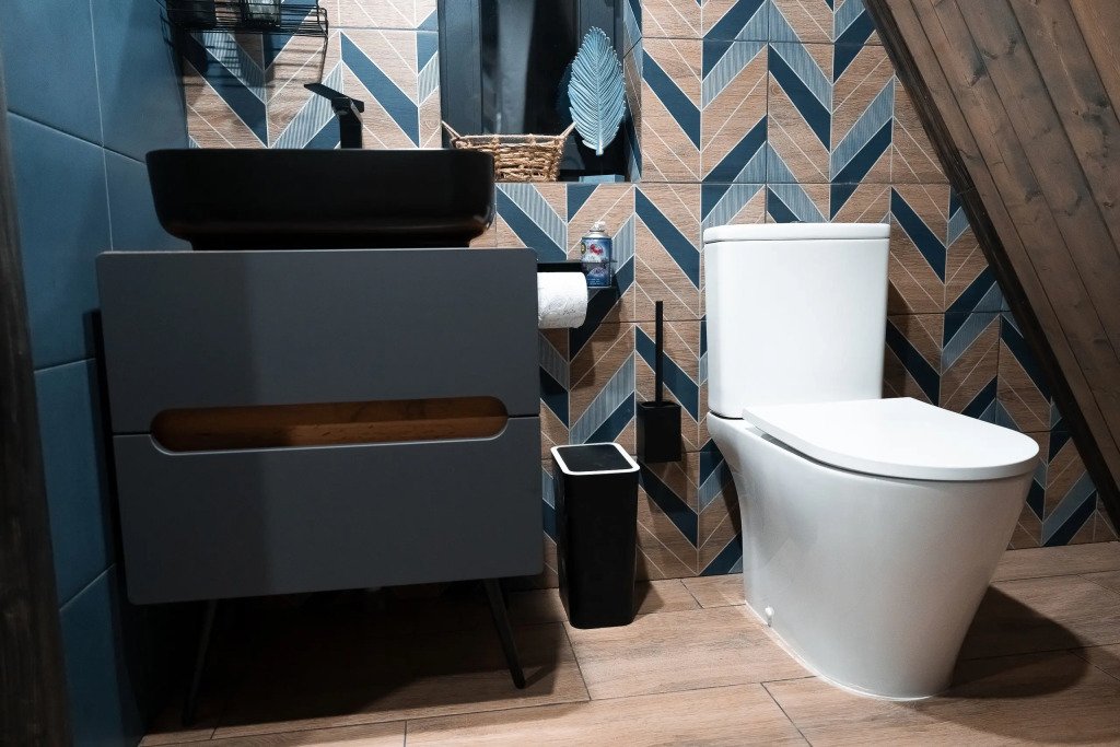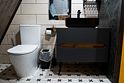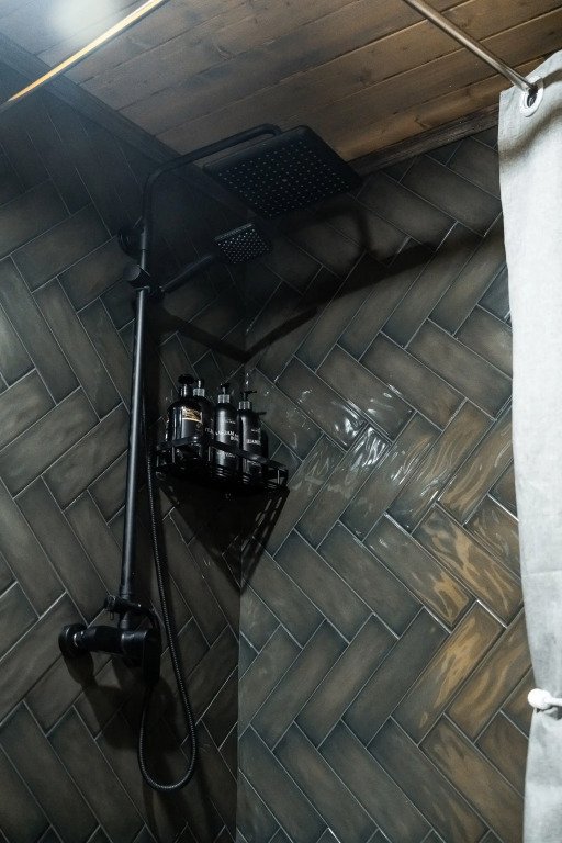 Ванная комната с душем, туалетом и раковиной
