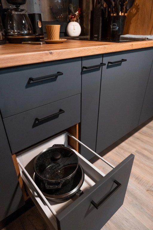 В Вашем распоряжении столовые приборы, кастрюли, сковородки, чайник, микроволновка, холодильник, плита.