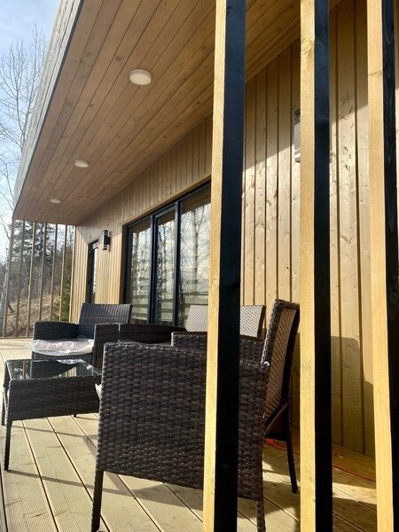 Новый компактный дом 2023 года для постоянного проживания. Гостевой дом «Дача Ярви» находится в посёлке Хуухканмяки, республика Карелия, среди леса в 10 минутах ходьбы от озера Пайкъярви.