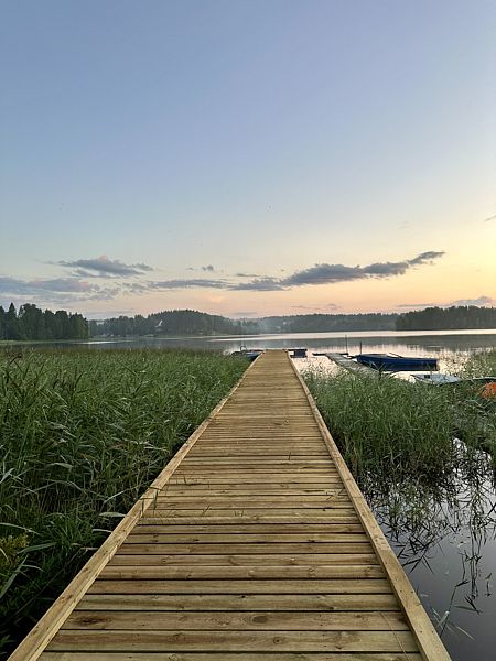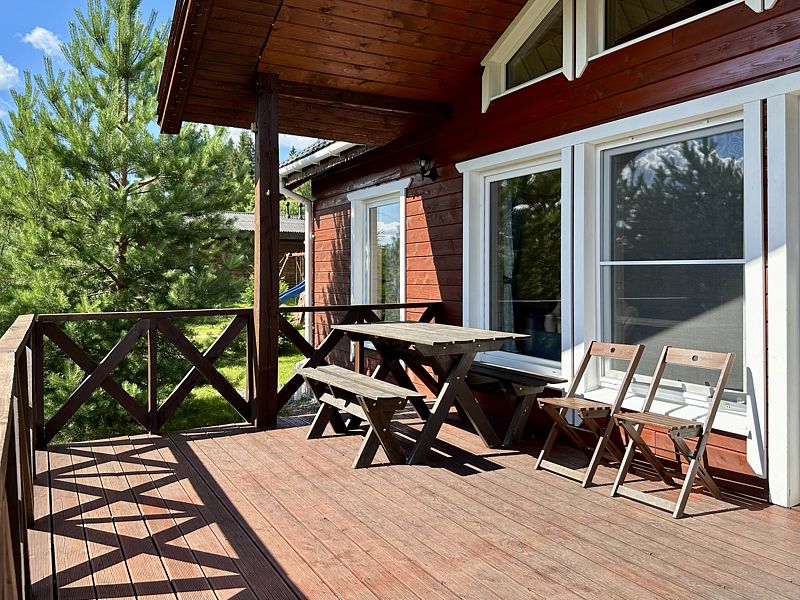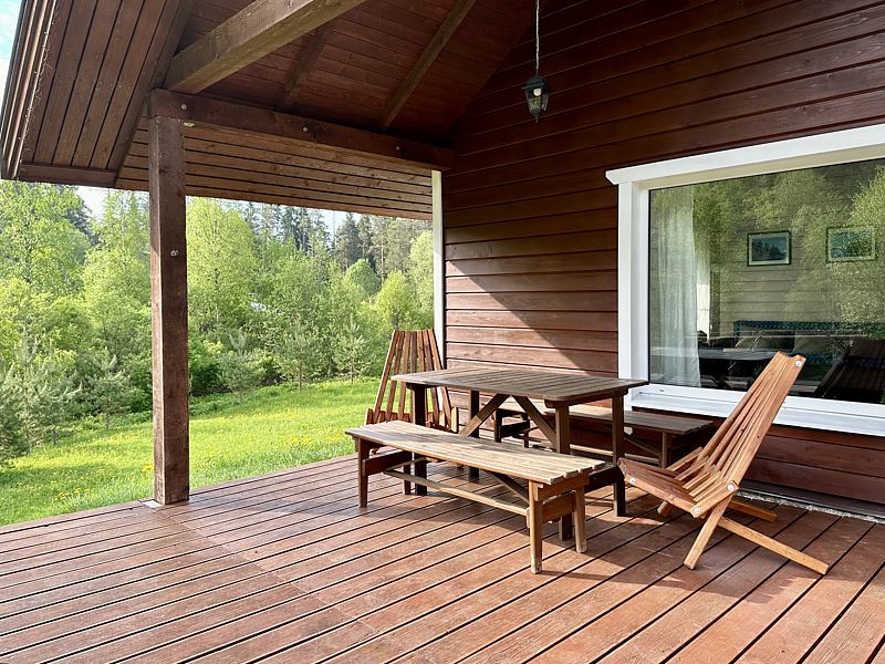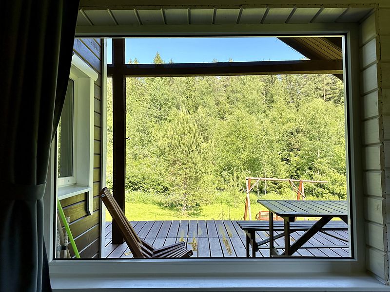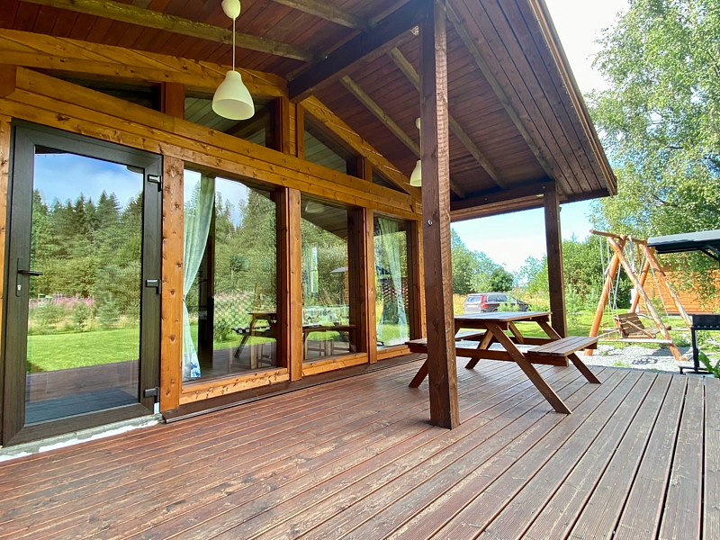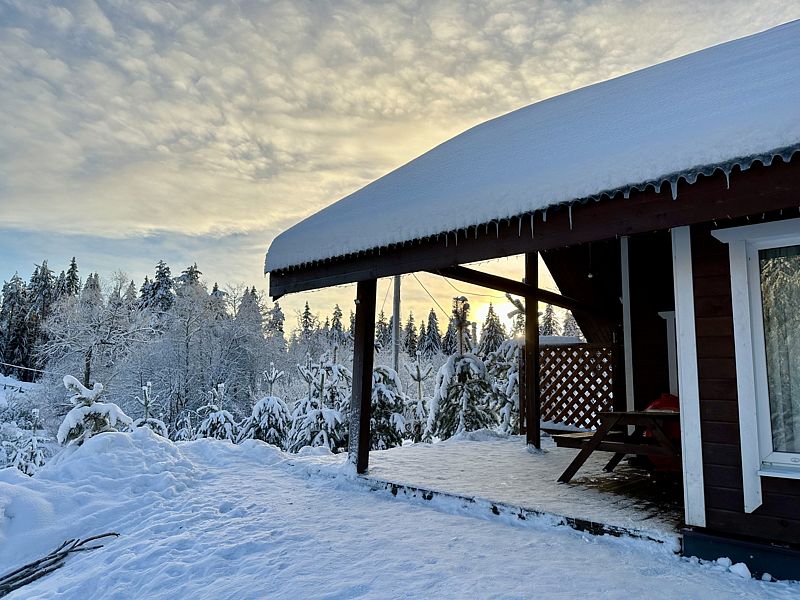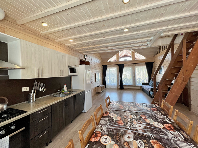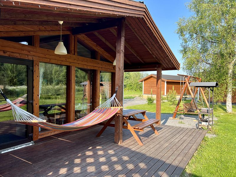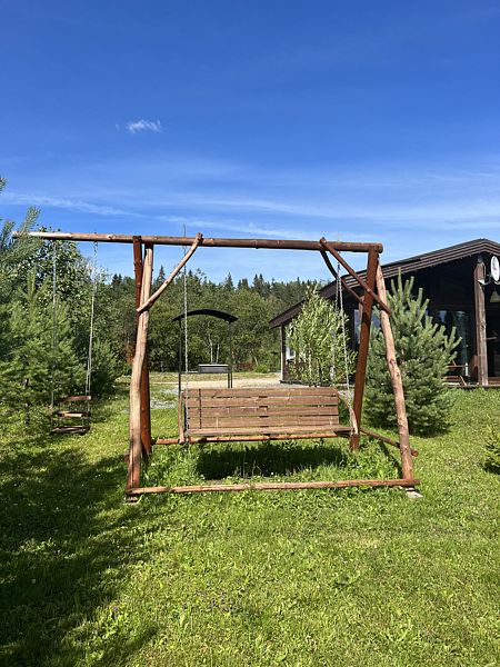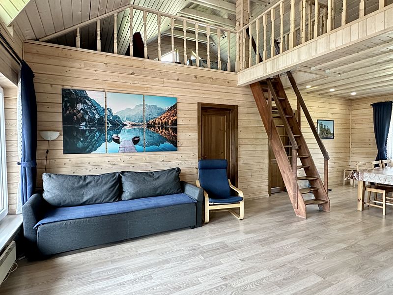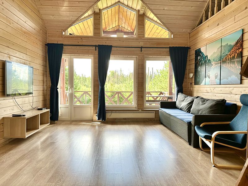 Семейный отдыхДостоинстваСовременные домики со всеми удобствами. Всё, что надо для комфортного и спокойного отдыха. Гостинная с кухней, спальня, сауна, веранда. Лужайка перед домом, стоянка. До центра города 4 км, рынок, все магазины для покупок. Лес с грибами и ягодами, озеро с островами для любителей рыбалки. Отдыхали 10 дней в сентябре, с погодой повезло.