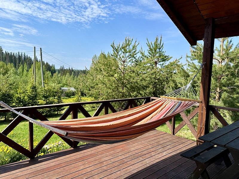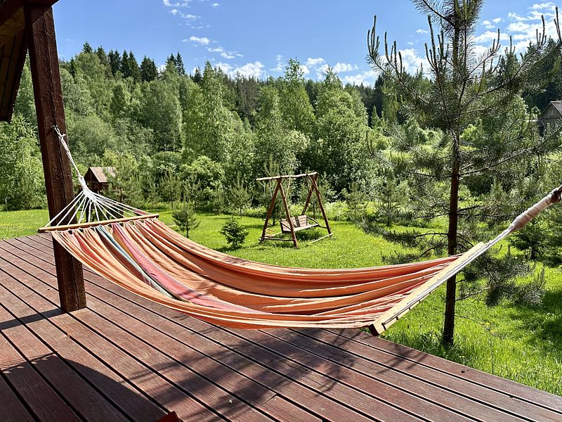 В летнее время в каждом коттедже есть индивидуальный гамак.
