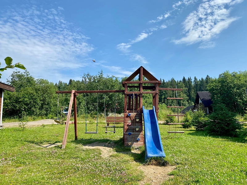 Для размещения предлагаются современные коттеджи с сауной: Коттедж с одной спальней на 4 человека; Коттедж с тремя спальнями на 6+2 человека; Коттедж с четырьмя спальнями на 8+4 человека. Каждый коттедж расположен на своем собственном большом участке с детской площадкой и мангальной зоной.