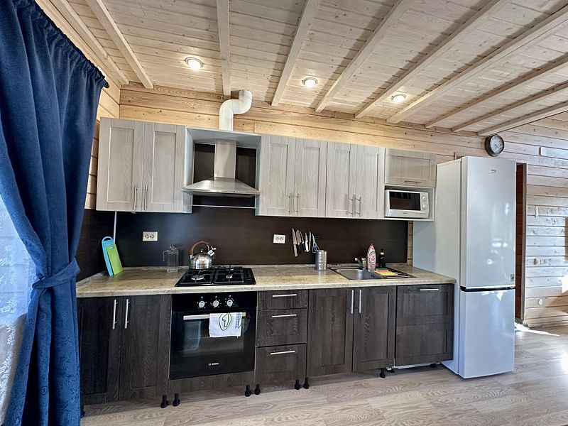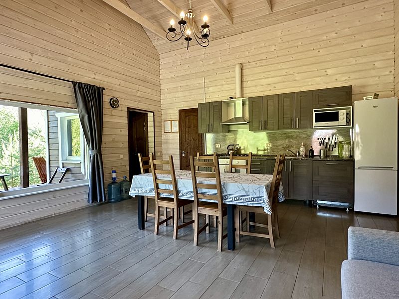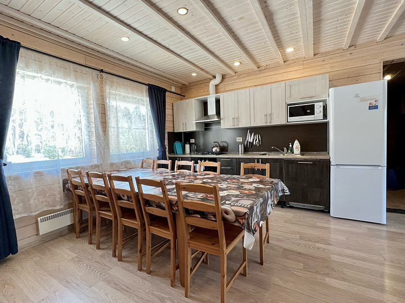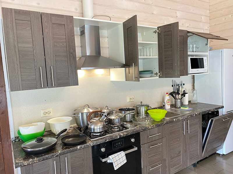 Сам дом достаточно просторный, вшестером тесноты не испытывали. В доме чисто и уютно. Постельное и полотенца чистые, свежие. В наличии все для комфортного проживания вплоть до посудомоечной машины. Сауна в доме (электрическая) доступна в любое время. Мангальная зона под козырьком - удобно на случай дождя. В паре десятков метров лес с обилием валежника. Правда, если предпочитаете уголь, нужно брать свой.