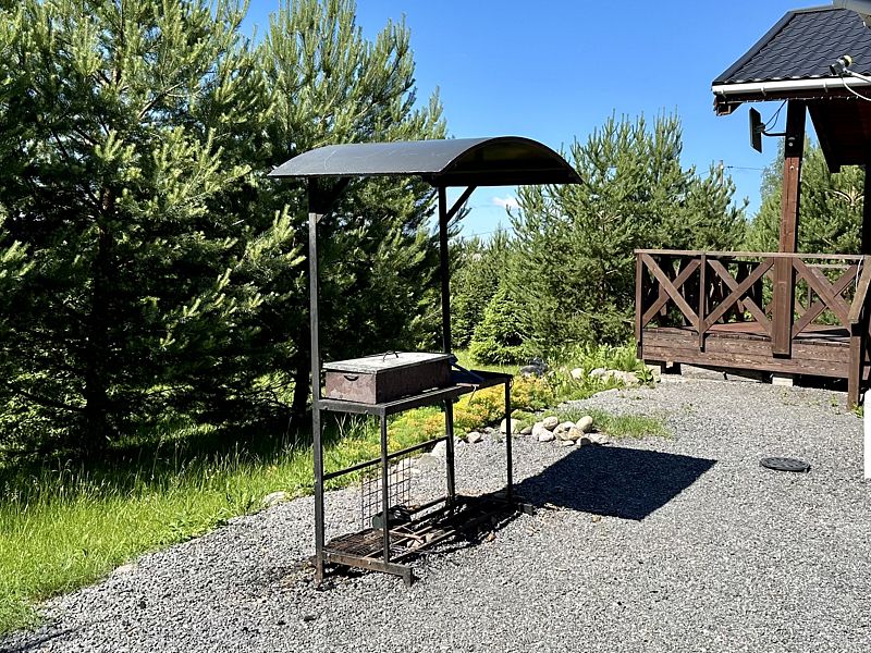 Индивидуально для каждого коттеджа предоставляются крытый мангал и шампуры. С собой необходимо привезти уголь и розжиг.