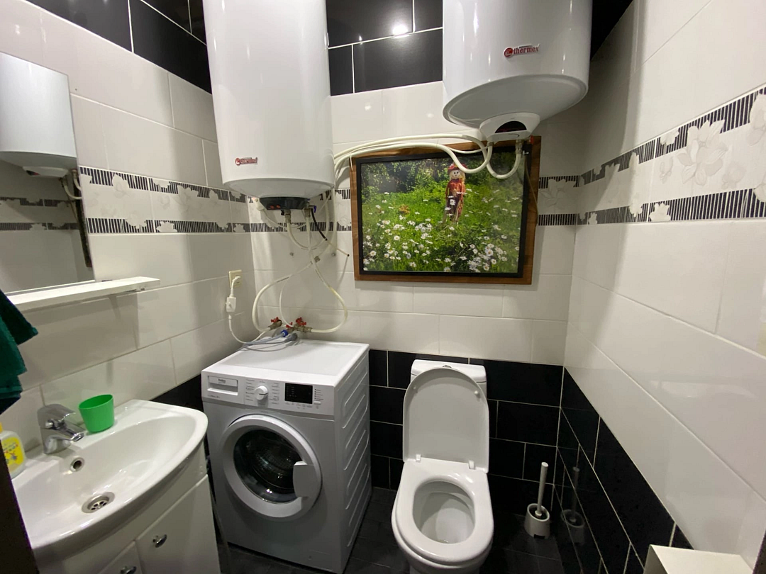 - кухня - гостиная. Кухня оборудована всей необходимой техникой: холодильник, газовая варочная панель, духовка, посудомоечная машина, микроволновая печь, чайник, стиральная машина. Много посуды. Стульчик для кормления.