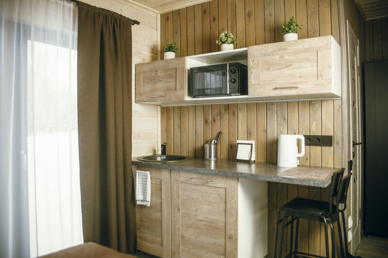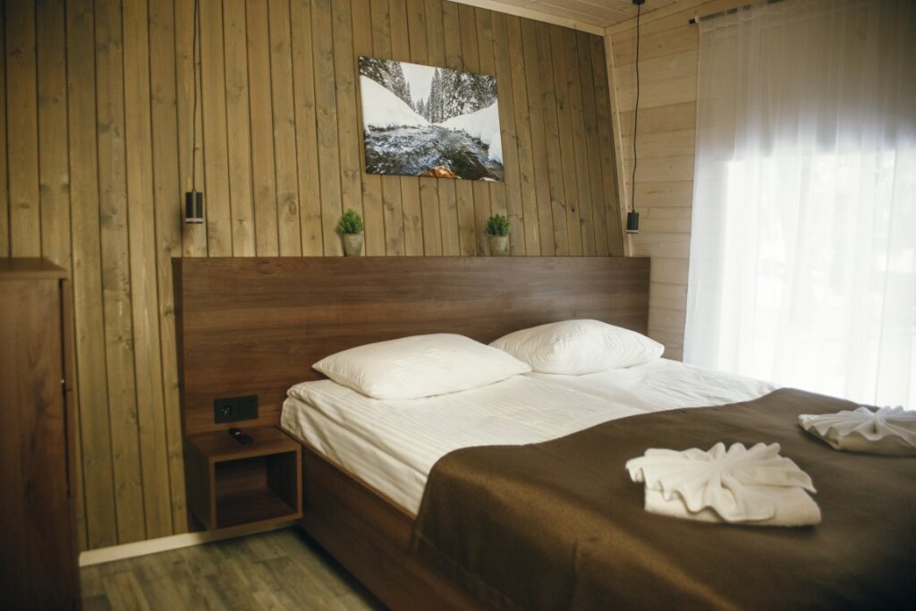 В отеле предлагается разнообразие проживания, включая номера, домики и апартаменты, которые подойдут как для уединенного отдыха, так и для отдыха с семьей или компанией. Все помещения оснащены функциональной мебелью и современной техникой, а также предоставляются необходимое белье, полотенца и халаты. В ванных комнатах также есть средства личной гигиены. В домиках гостей ожидают индивидуальные кухни, а в корпусах отеля есть общие кухонные и столовые зоны.