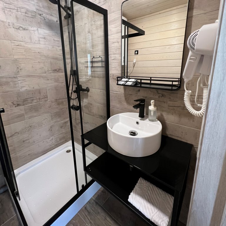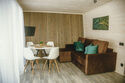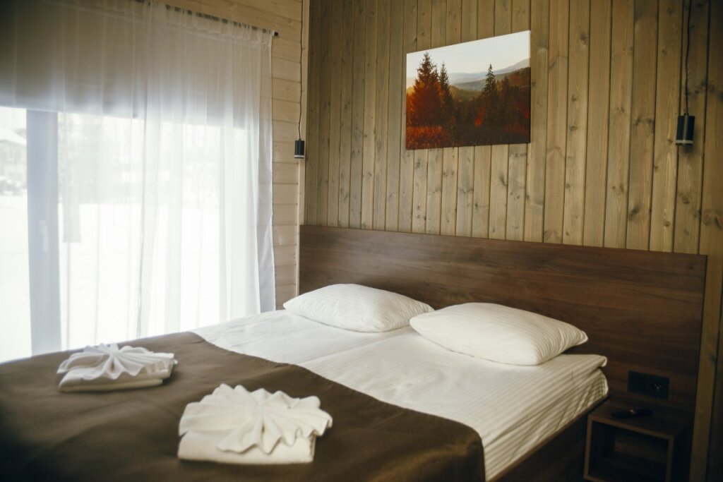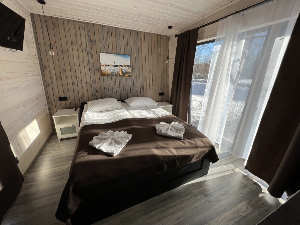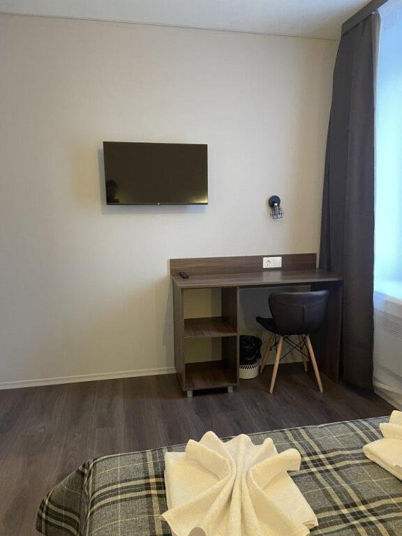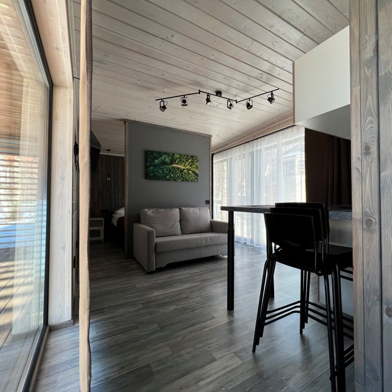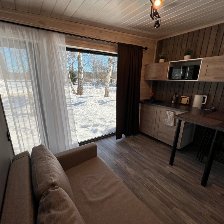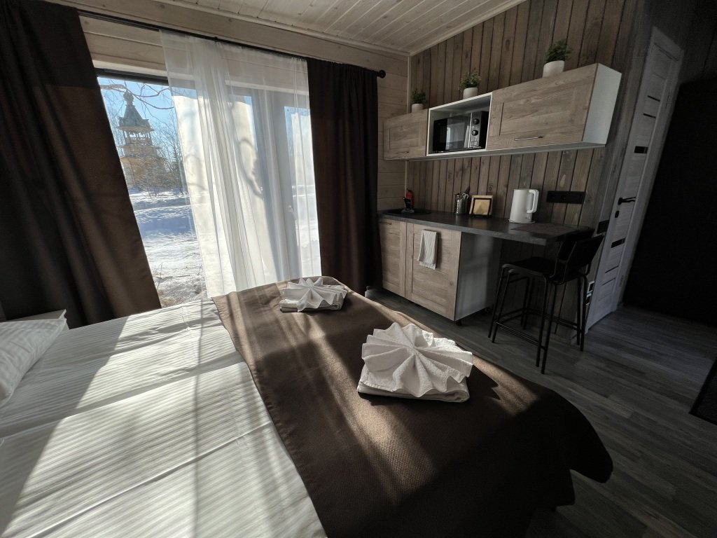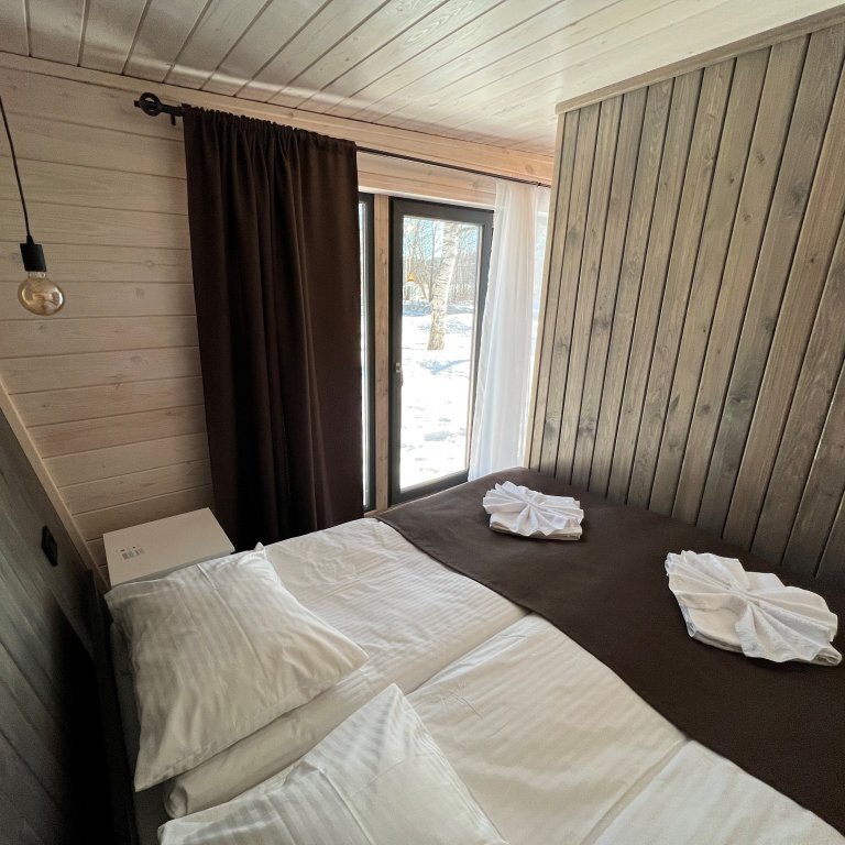 Мы останавливались в апартаментах на семью из 4 человек, было комфортно. Дети (7 и 11 лет) спали на диване, довольно просторно, но при желании можно взять доп.место. Есть к чему стремиться и есть, что улучшать в бытовом плане, в целом, все на отличном уровне, без особых изысков, но т.к.отель простой и без пафоса, при этом превзошёл наши ожидания: чистое белье, посуда (самое необходимое есть), мягкие кровати, бытовая техника, отличный напор воды и сантехника, сауна, большая парковка ... есть проблема с лесокомбинатом, он немного шумит, но если закрыть окно со стороны комбината, при этом оставив окно во двор, комбинат не слышно вообще и при этом не душно. В остальном он не мешает: пыли от него нет.
