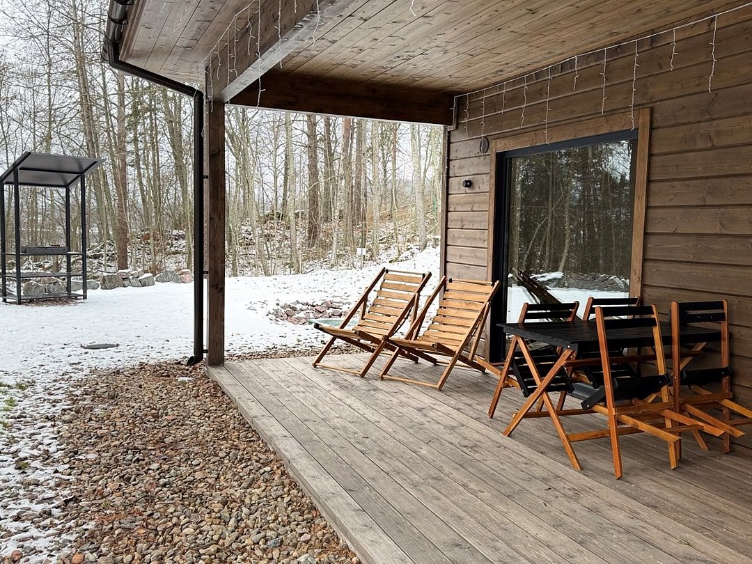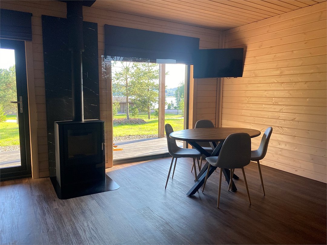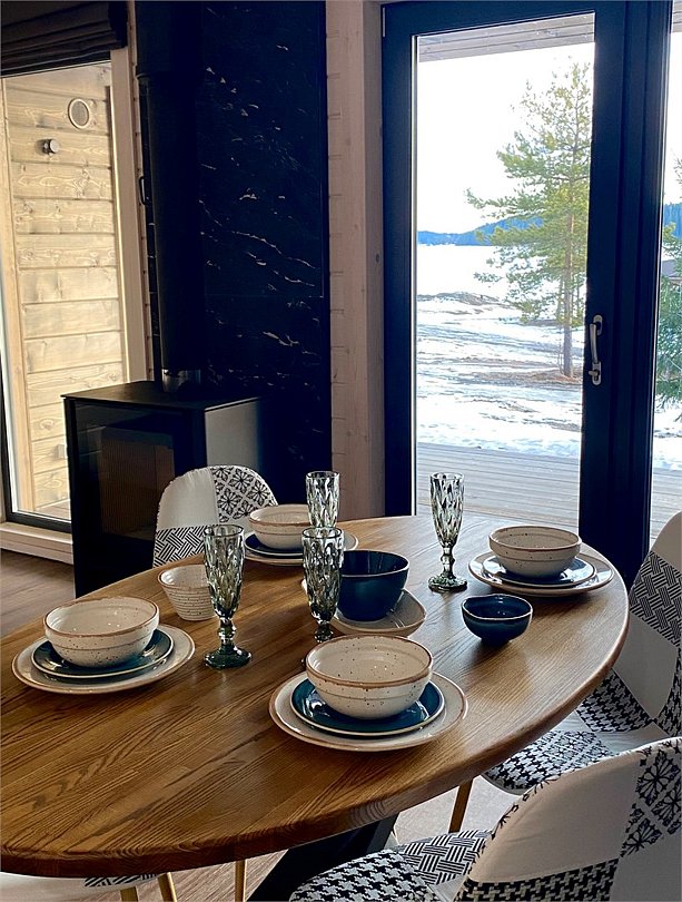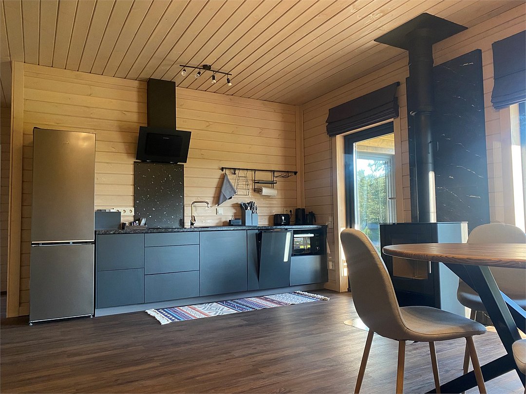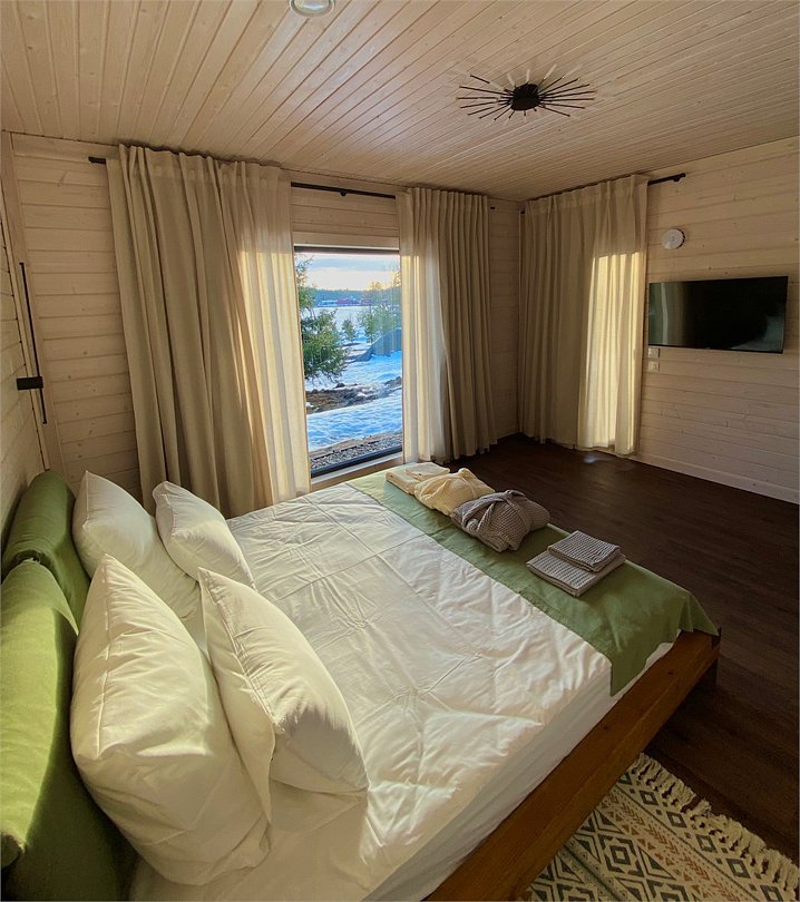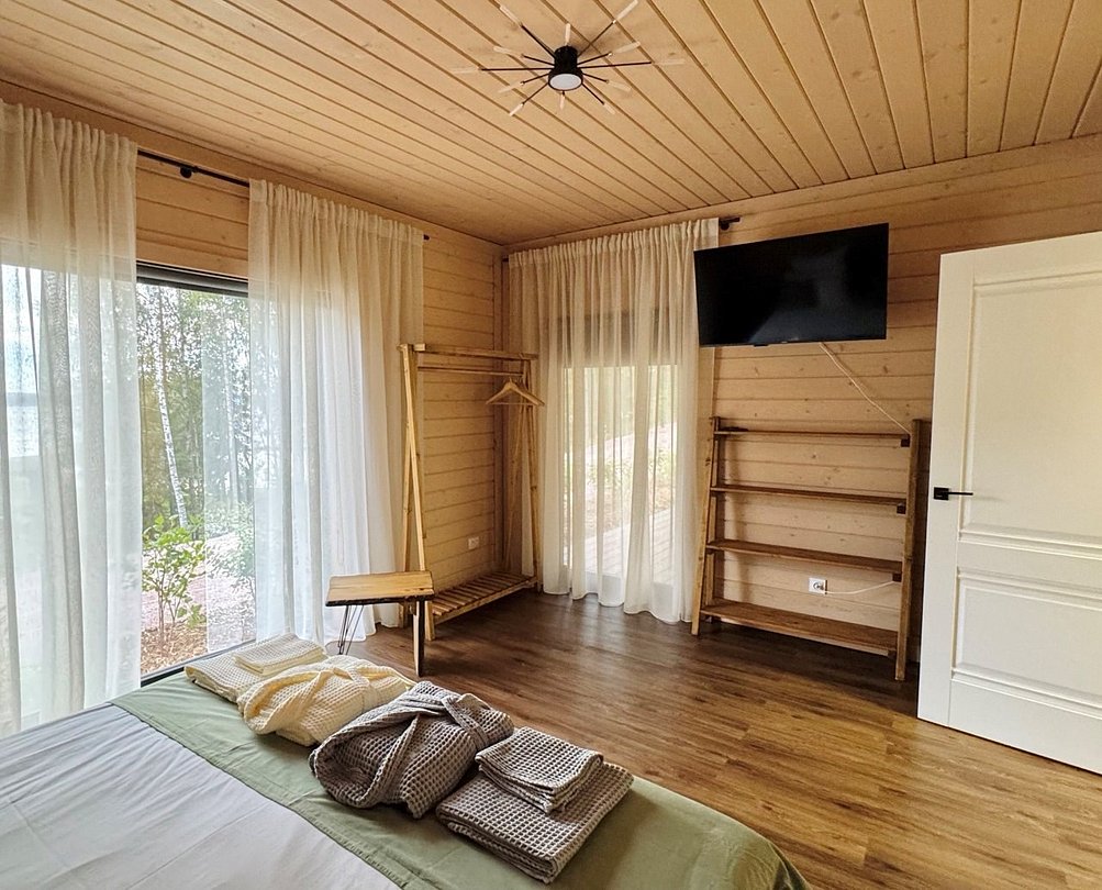 Дом с 3 спальнями, где каждое утро начинается с вида на водную гладь. Панорамные окна по всему периметру дома, просторная гостиная с камином и собственная сауна. Прямой выход на террасу и к собственной береговой линии. Дом полностью оборудован всем необходимым для комфортного отдыха. Наслаждайтесь утренним кофе на террасе с видом на озеро и закатами прямо из гостиной.Услуги и удобства