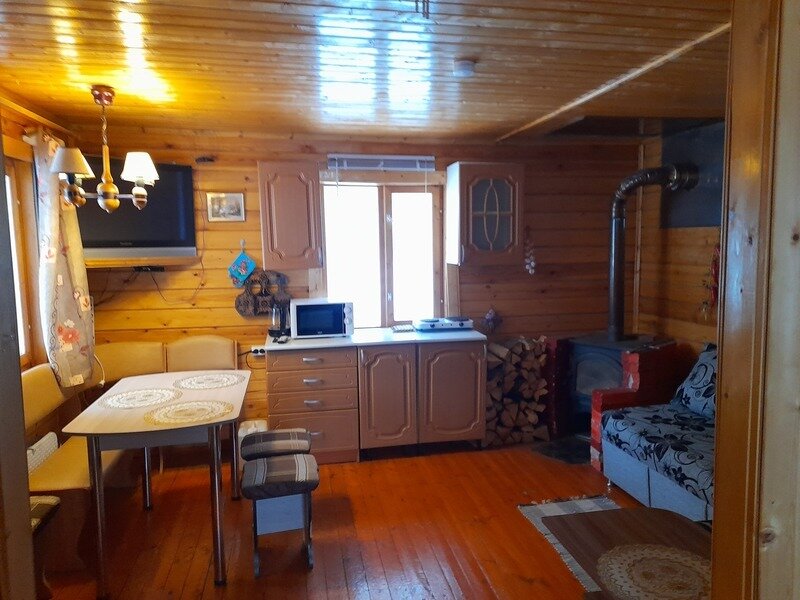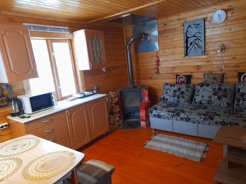 В доме есть все необходимое: холодильник, плита, камин, два дивана. До 4 человек + баня входит в стоимость. Вода в доме, туалет на улице.