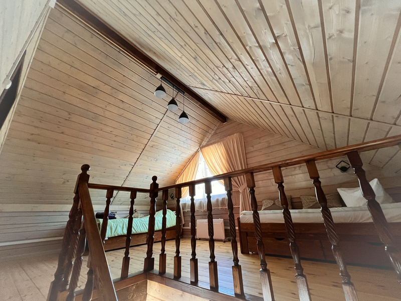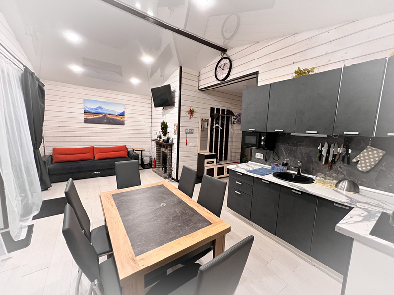 Система теплых полов по всему дому, горячая вода без ограничений, быстрый Wi-Fi, Smart TV, современный душ, туалет с септиком, кухня, посудомоечная машина, микроволновая печь, вся необходимая посуда, постельное белье, тапочки и полотенца для каждого гостя, большая терраса с качелями с живописными видами, мангальная зона для шашлыка и барбекю.