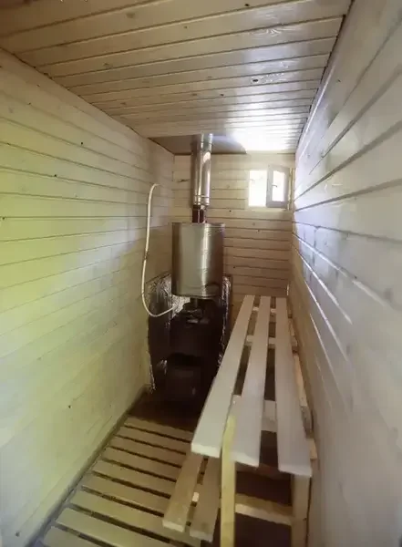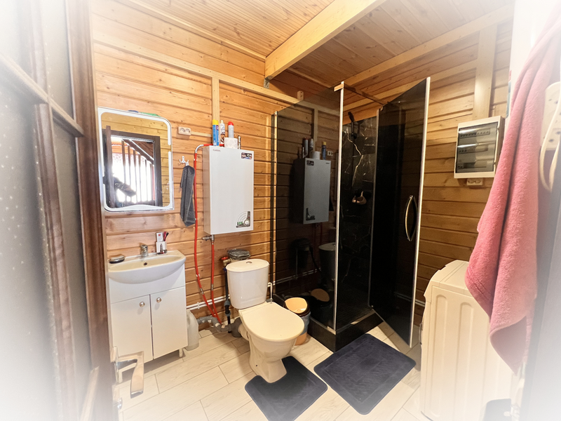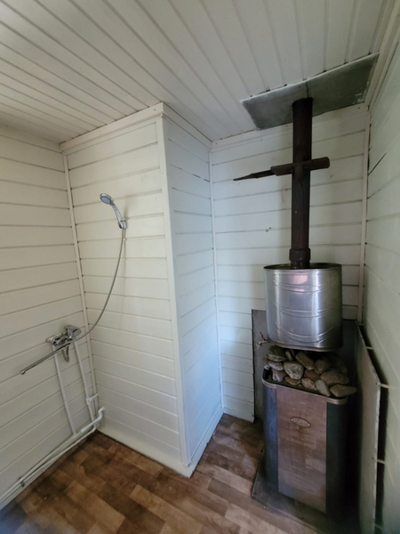 В доме есть оборудованная всем необходимым кухня, печь, газовая плита, электро-водонасос. Сауна. Электричество. Туалет отдельностоящий.