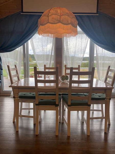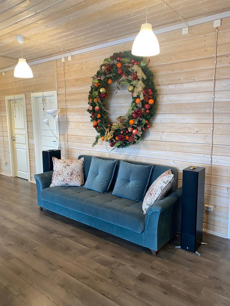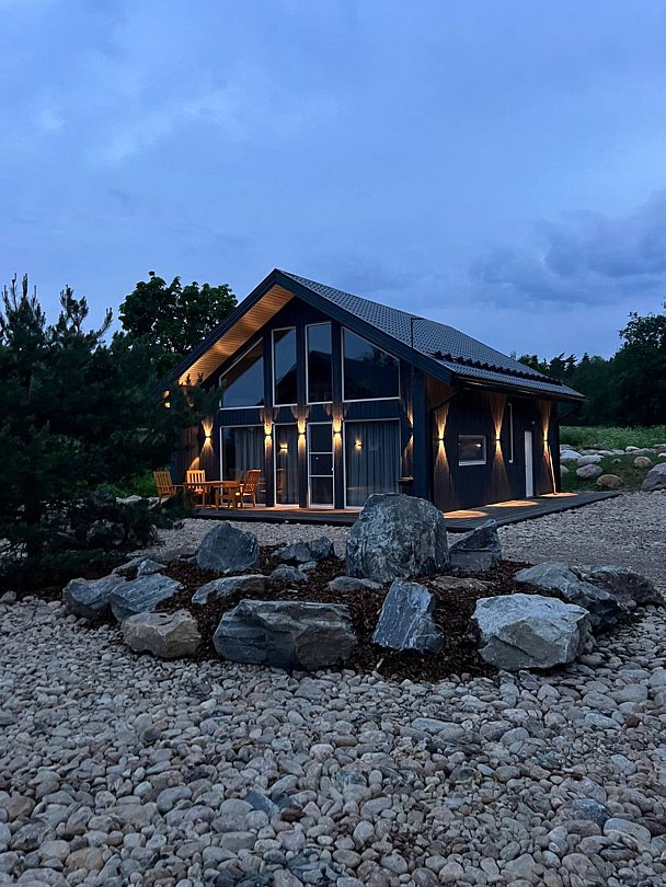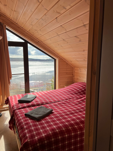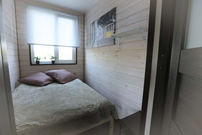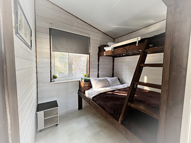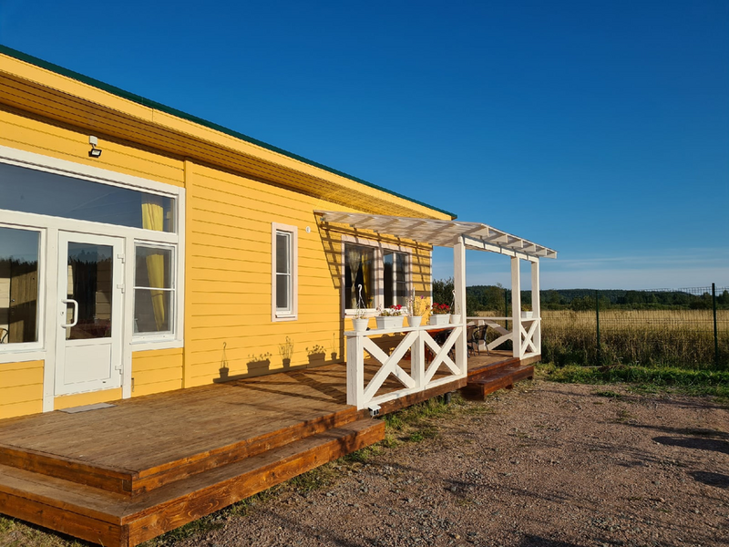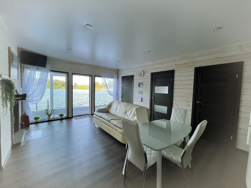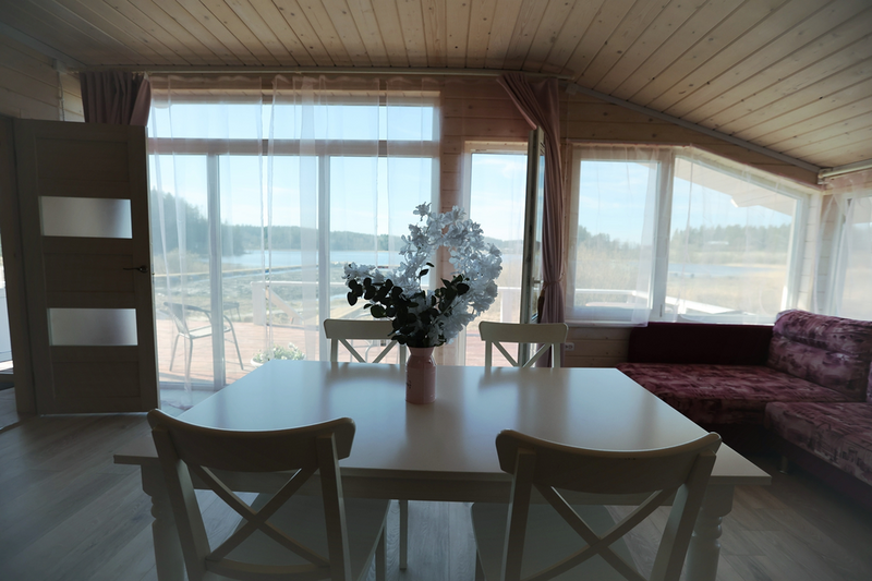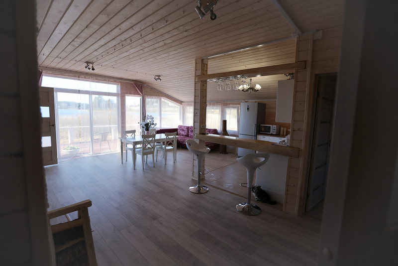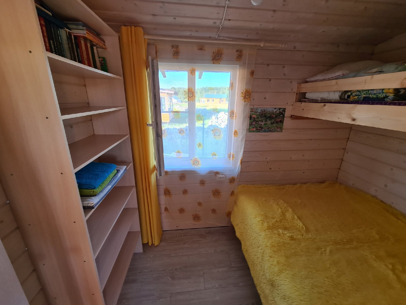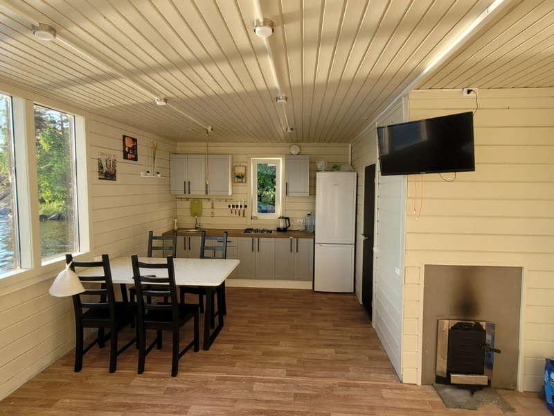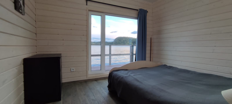 Дом рассчитан на 4 (+2) гостей: 2 отдельные спальные комнаты с широкими кроватями (160*200) и большой диван в общей гостиной. Встречайте рассветы и закаты с потрясающими видами на Ладожские шхеры из панорамных окон.