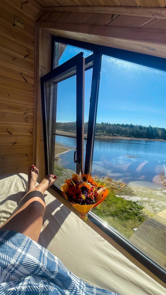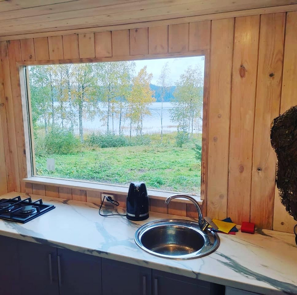 Путешествие с семьейНезабываемый отдых всей семьейОтдыхали вдвоем с мужем и детьми. Это был незабываемый отдых в полном уединении!!! Домик находится в потрясающе красивом месте! Новый, чистый, снабжен всем необходимым для комфортного проживания, через панорамные окна видна вся красота местной природы. Огромный плюс, что есть баня на дровах, а это такой кайф из парилки в озеро. Есть терраса с креслами и кофейным столиком. Из мобильной связи хорошо работает Мегафон, Билайн не работал вообще, но есть вай-фай. Продуктами лучше закупиться, т.к. до магазина ехать прилично по ухабистой дороге. Александру большая благодарность! Гостеприимно встретил, все рассказал, показал и в дальнейшем по другим вопросам был отзывчив. В общем это место куда хочется вернуться!