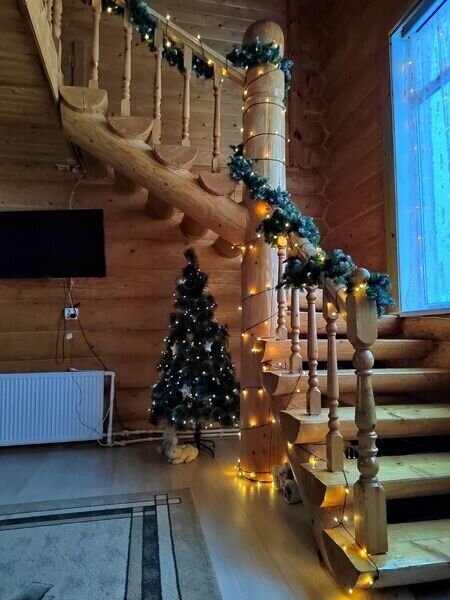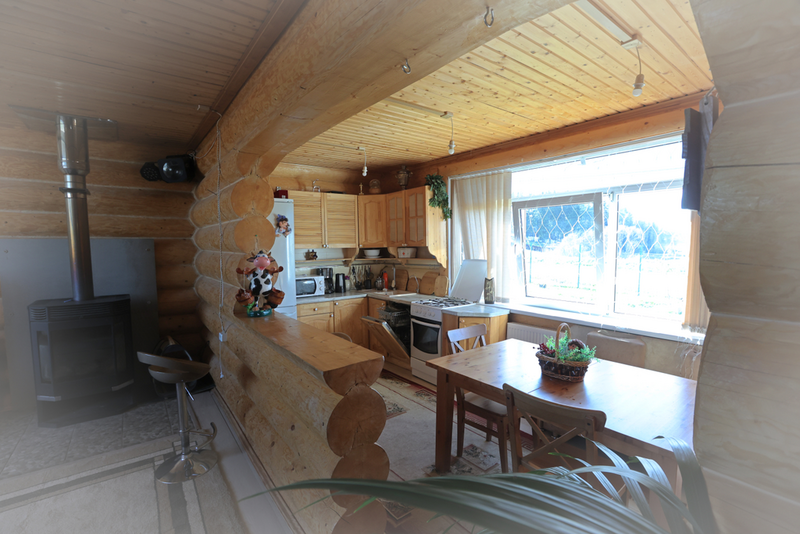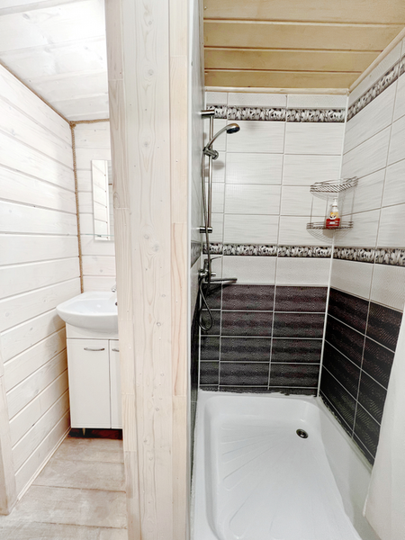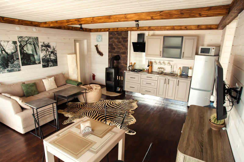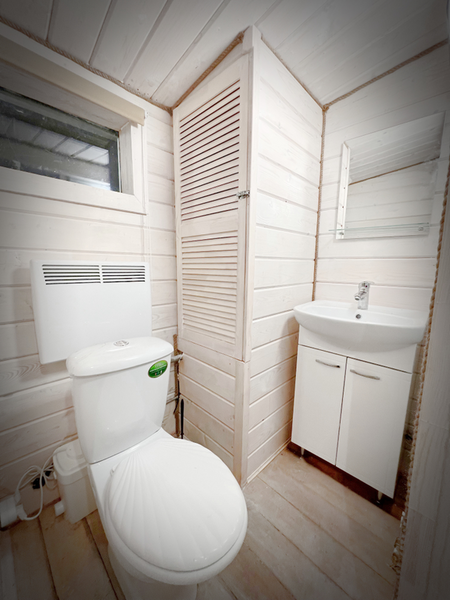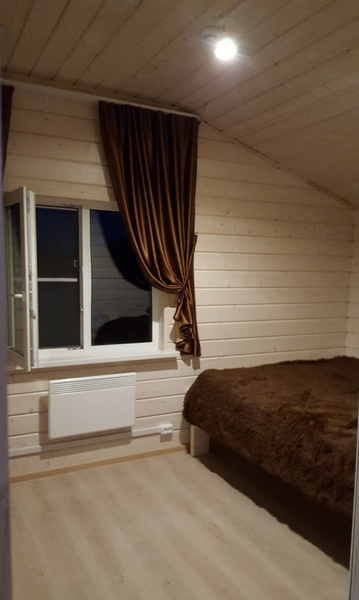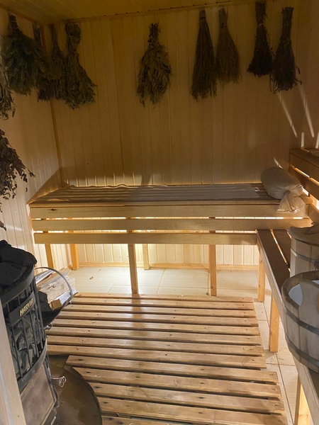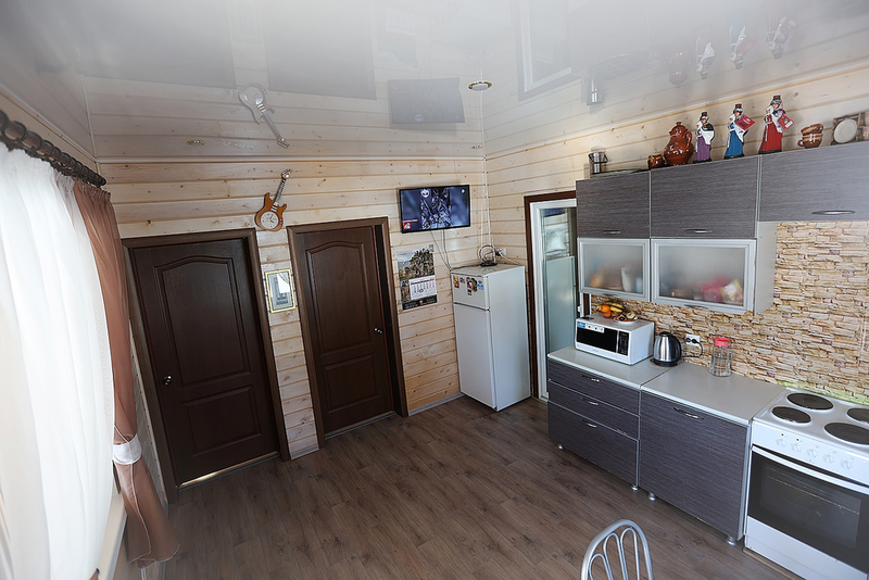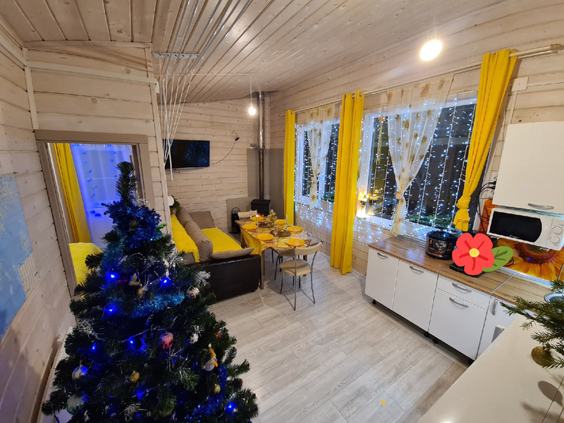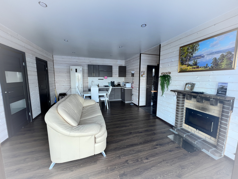 В доме есть все необходимое: душ, туалет, оборудованная кухня, телевизор. Русская баня на дровах. Камин. Своя мангальная зона и веранда. Дрова, постельное белье и парковка включены в стоимость.